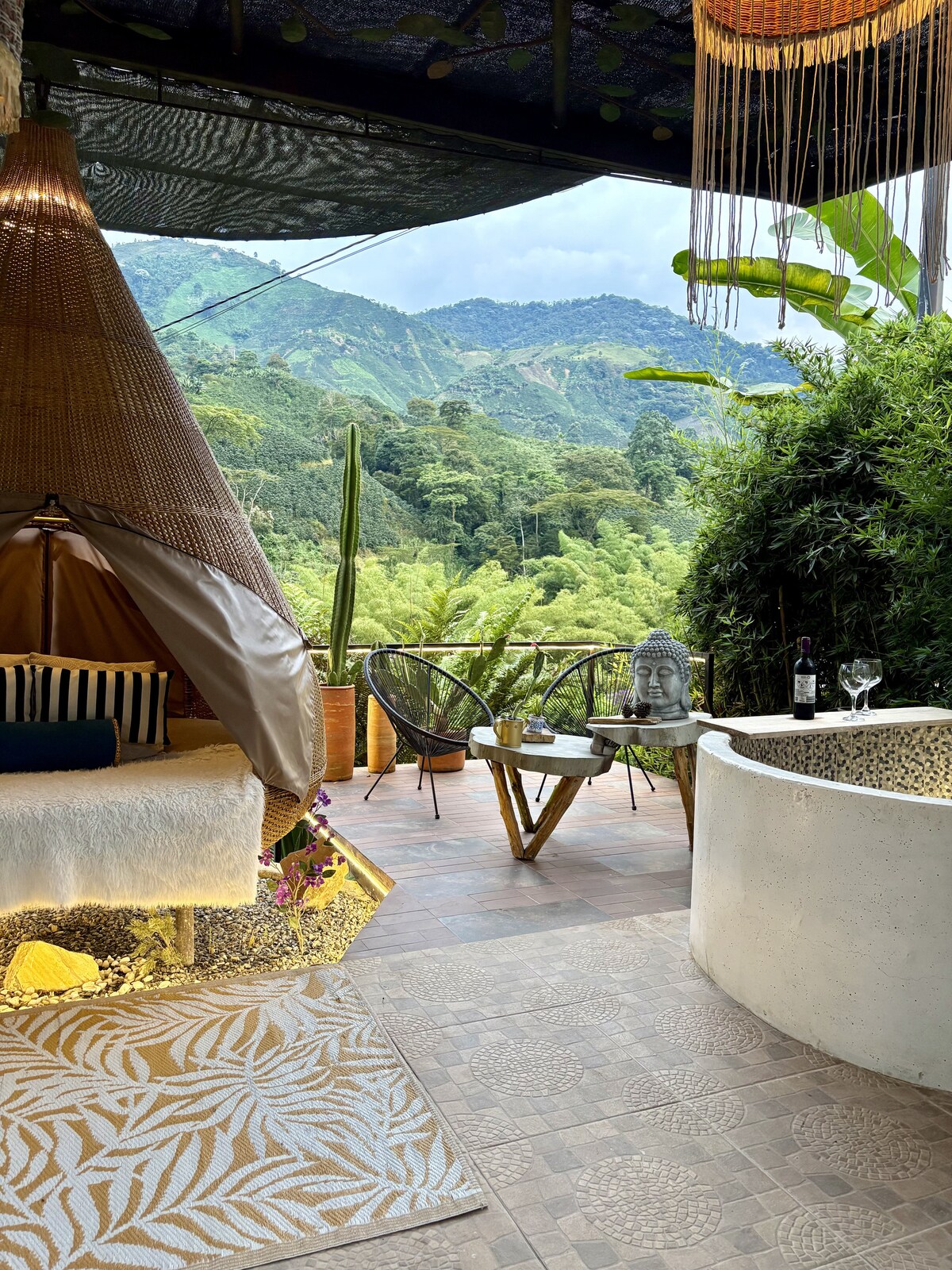 Alójate en un cómodo glamping en medio de cafetales y conéctate con el sorprendente paisaje y la cultura cafetera. Disfrutarás de una vista inigualable mientras tomas un relajante baño en el jacuzzi, o mientras te recuestas en la malla catamarán y degustas de nuestro café de origen. También podrás refrescarte en la piscina, caminar por nuestras montañas y aprender un poco de nuestra cultura. A tan solo 25 minutos de Chinchiná y 60 minutos desde Manizales