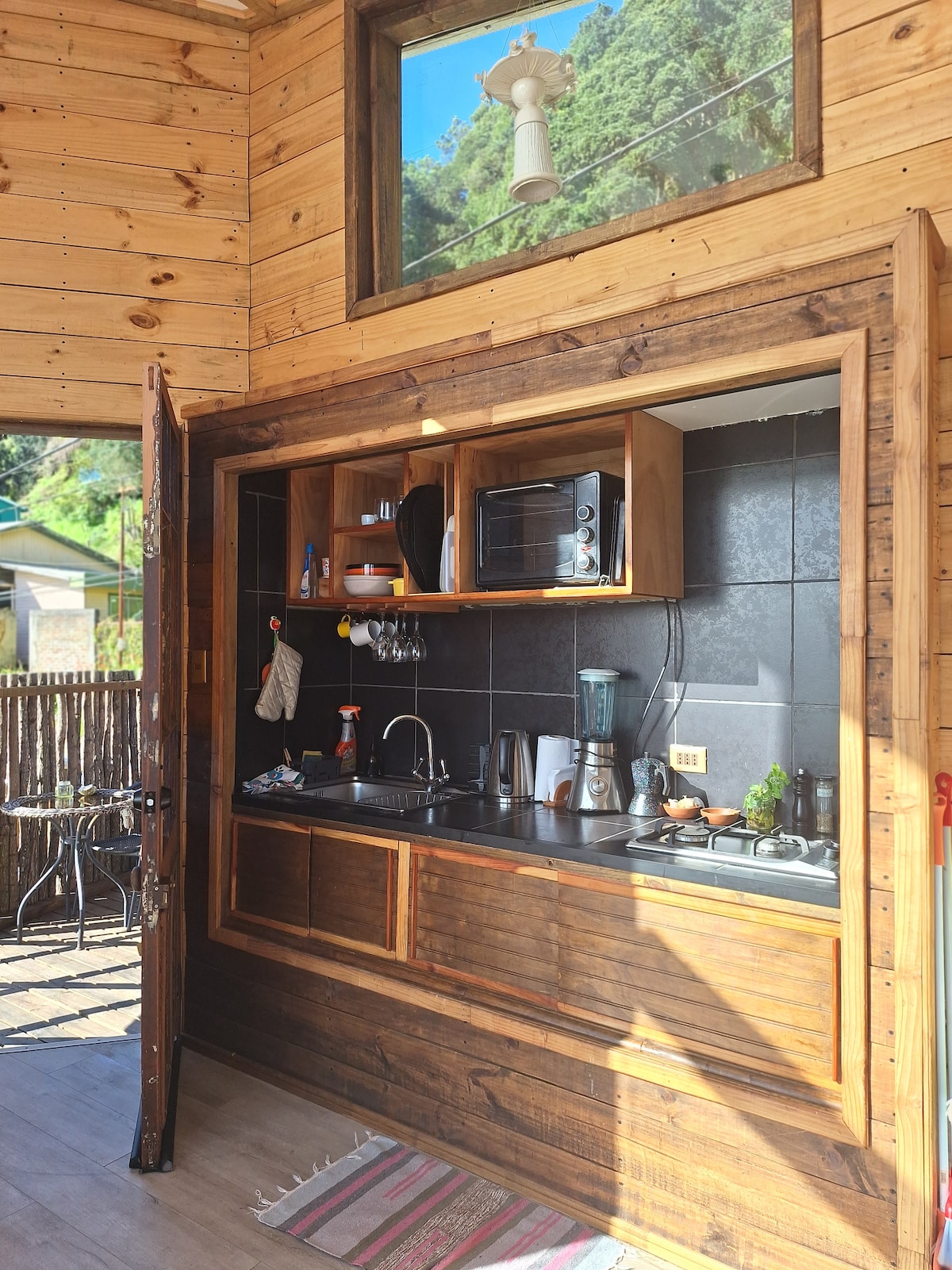 Cabaña tipo loft que permite el descanso y desconexión en medio de árboles nativos y una espectacular vista a la Bahía de Concepción. Ubicada en un peñón entre las caletas grande y chica de Cocholgue, para acceder a ella se debe bajar por un pasaje y subir una escalera, el trayecto es muy breve y simple, pero no apto para personas con movilidad reducida. Es un espacio ideal para quienes quieren vivir una experiencia única, donde el mar y sus atardeceres son los protagonistas.