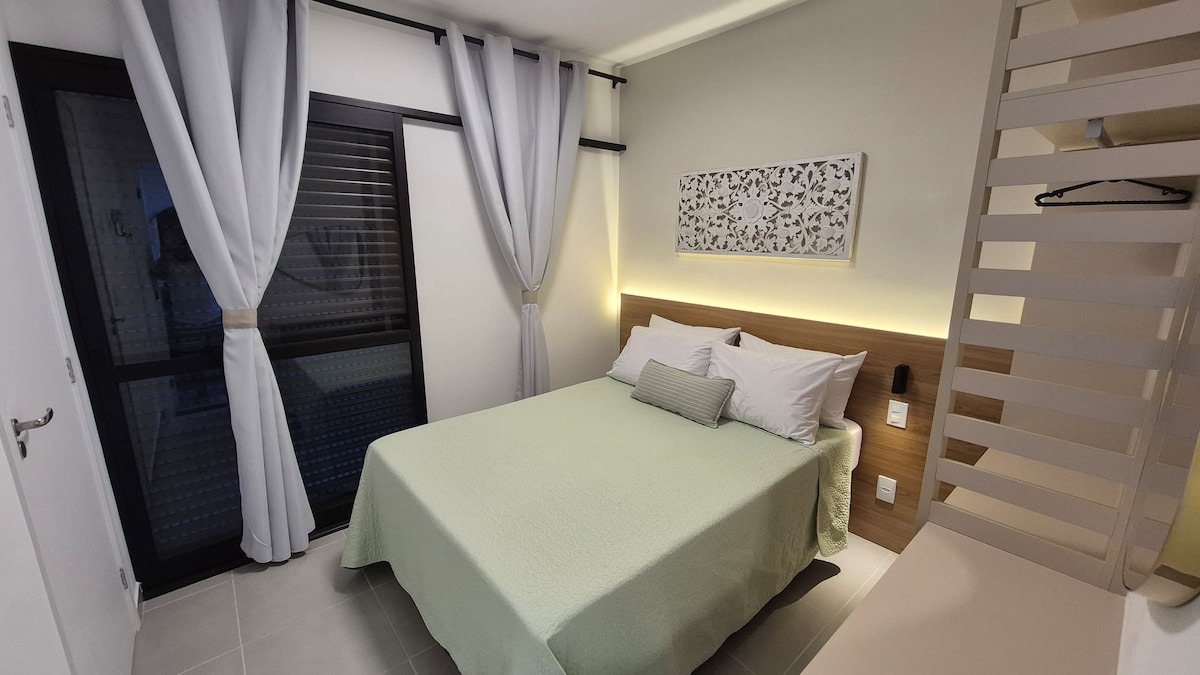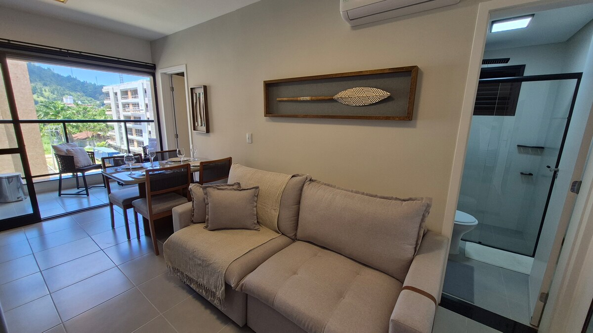 Encantadores estudios independientes en la hermosa playa de Prumirim. Entrada independiente, patio privado, cocina totalmente equipada, cama queen size de alta calidad, cómoda sala de estar. Todo diseñado con calidad, comodidad y estilo. ¡Grandes ventanales panorámicos que te harán sentir entre las copas de los árboles! Este es un lugar mágico para aquellos que buscan una escapada romántica junto al mar conectándose con la naturaleza sin comprometer su comodidad. ¡Todo meticulosamente limpio, desinfectado y seguro!