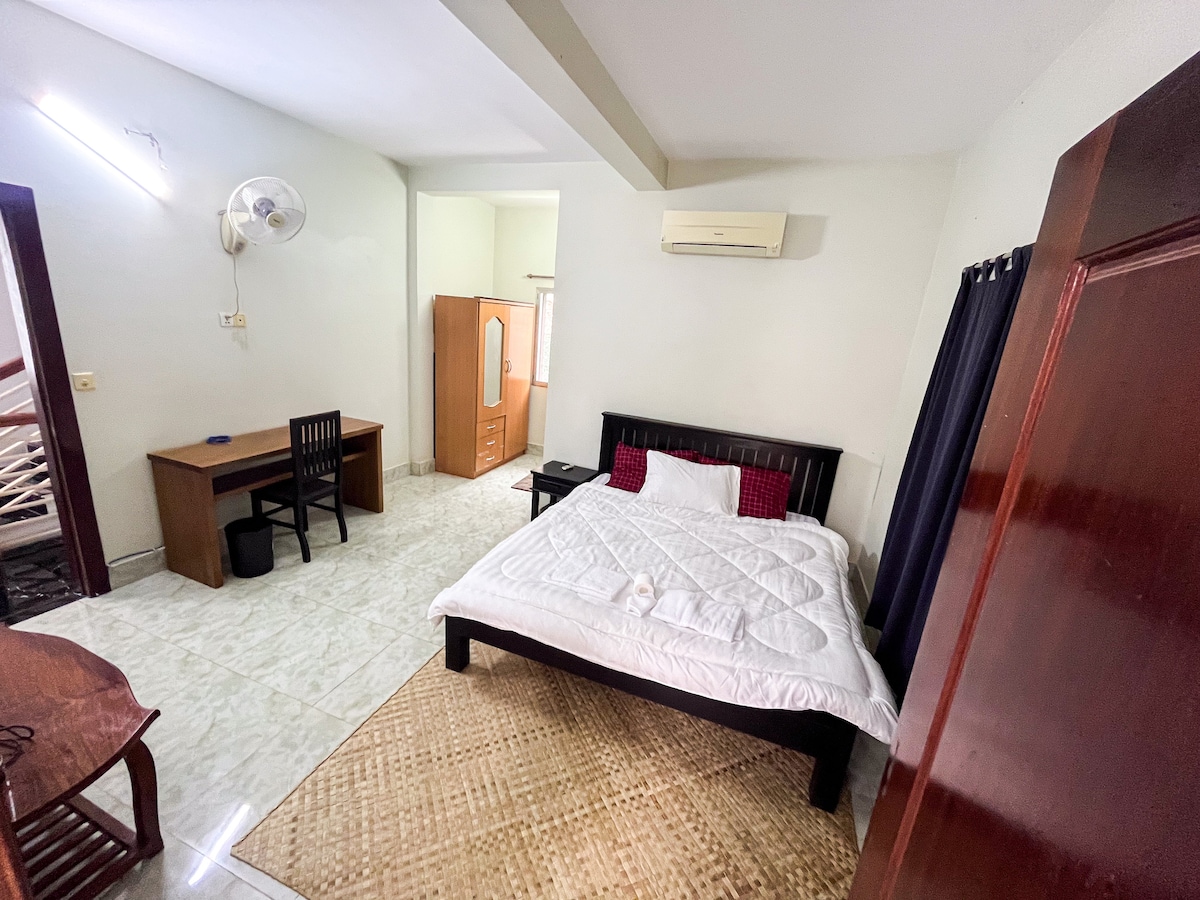 Ubicado en una zona tranquila y silenciosa en el centro de la ciudad, con un amplio jardín con flores y árboles exóticos perfectos para relajarse después de un día caluroso y agotador de viajes o visitas turísticas. A poca distancia de la isla, el mercado local, la pizzería Pursat y restaurantes de comida jemer. Lugar seguro para aparcar motos, bicicletas o coches. El propietario puede ayudarte a alquilar una motocicleta o bicicletas y un guía de habla inglesa.