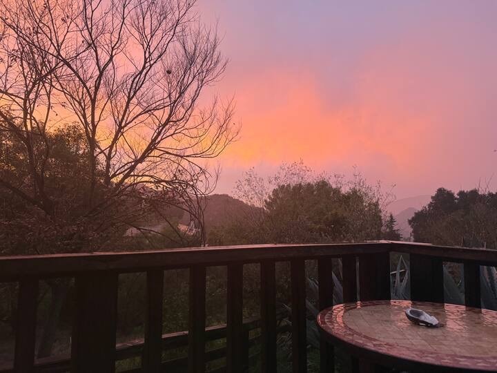 Este encantador dúplex ofrece un refugio tranquilo con impresionantes vistas a las montañas. Las grandes ventanas y puertas correderas llenan el espacio con luz natural y se abren a las pintorescas montañas Topanga. Relájate en la espaciosa terraza, perfecta para comer o descansar. En el interior, encontrarás muebles cómodos, incluidos dos camas tamaño queen y una cama tamaño king. La sala de estar tiene TV de pantalla plana, WiFi y cocina totalmente equipada con cafetera Nespresso, licuadora y tostadora para tu comodidad. Caminata a Eagle Rock en 30 minutos.