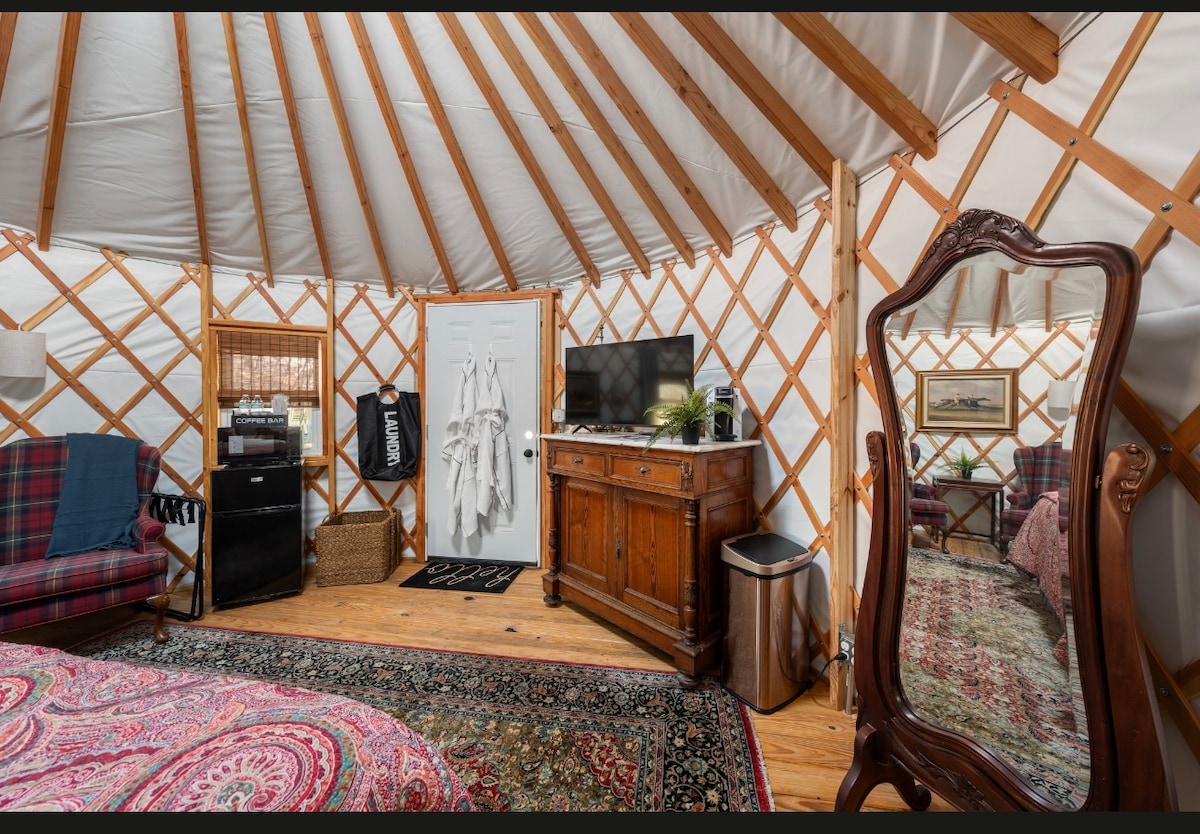 ¡Una experiencia de glamping definitiva! Sumérgete en la sofisticación atemporal del estilo de vida de polo con esta yurta única de 16pies. Diseñado para aquellos que aprecian el deporte, el lujo y el encanto rústico, este refugio combina el estilo ecuestre clásico con la comodidad moderna. En el interior, los textiles a cuadros cálidos y los acogedores y atractivos neutrales, se suman a la elegancia. ¡Adéntrate en un mundo escarpado y majestuoso!