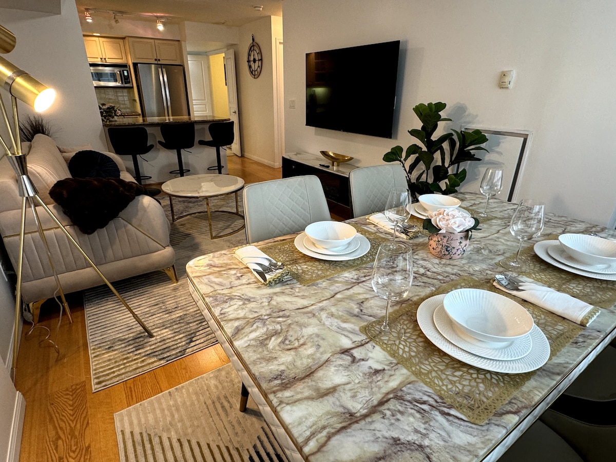 Esta suite de un dormitorio y dos baños en el piso 40 ofrece aproximadamente 750 pies cuadrados de vida de concepto abierto. El diseño amplio y luminoso cuenta con acabados de calidad, que incluyen encimeras de granito, electrodomésticos de acero inoxidable y ventanas del piso al techo. Todos los muebles son de calidad de diseño, creando un ambiente moderno y cómodo con estilo. El horizonte y las luces de la ciudad se suman a la experiencia general. La suite incluye cama tamaño king, escritorio, lavadora/secadora y mucho espacio.