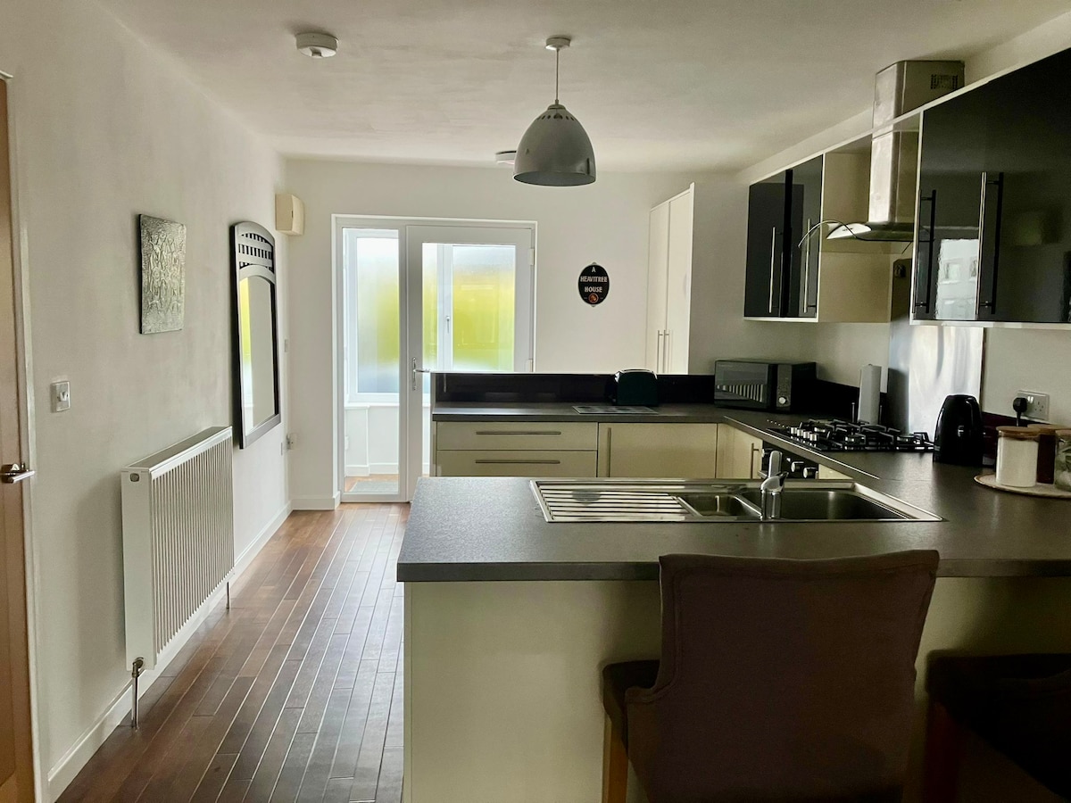 La casa del entrenador, Encantador bungalow de 2 dormitorios y 2 baños en Paignton, perfecto para familias o parejas. Ambos dormitorios cuentan con camas tamaño king, y la espaciosa cocina y sala de estar de planta abierta ofrecen un acogedor refugio. Disfruta del patio al aire libre con una mesa de comedor. A solo 5 minutos a pie de Paignton Seafront, a 8 minutos a pie de Goodrington Beach y a 10 minutos a pie de la estación de tren. Estacionamiento en el lugar incluido, que ofrece comodidad y fácil acceso a las atracciones locales.