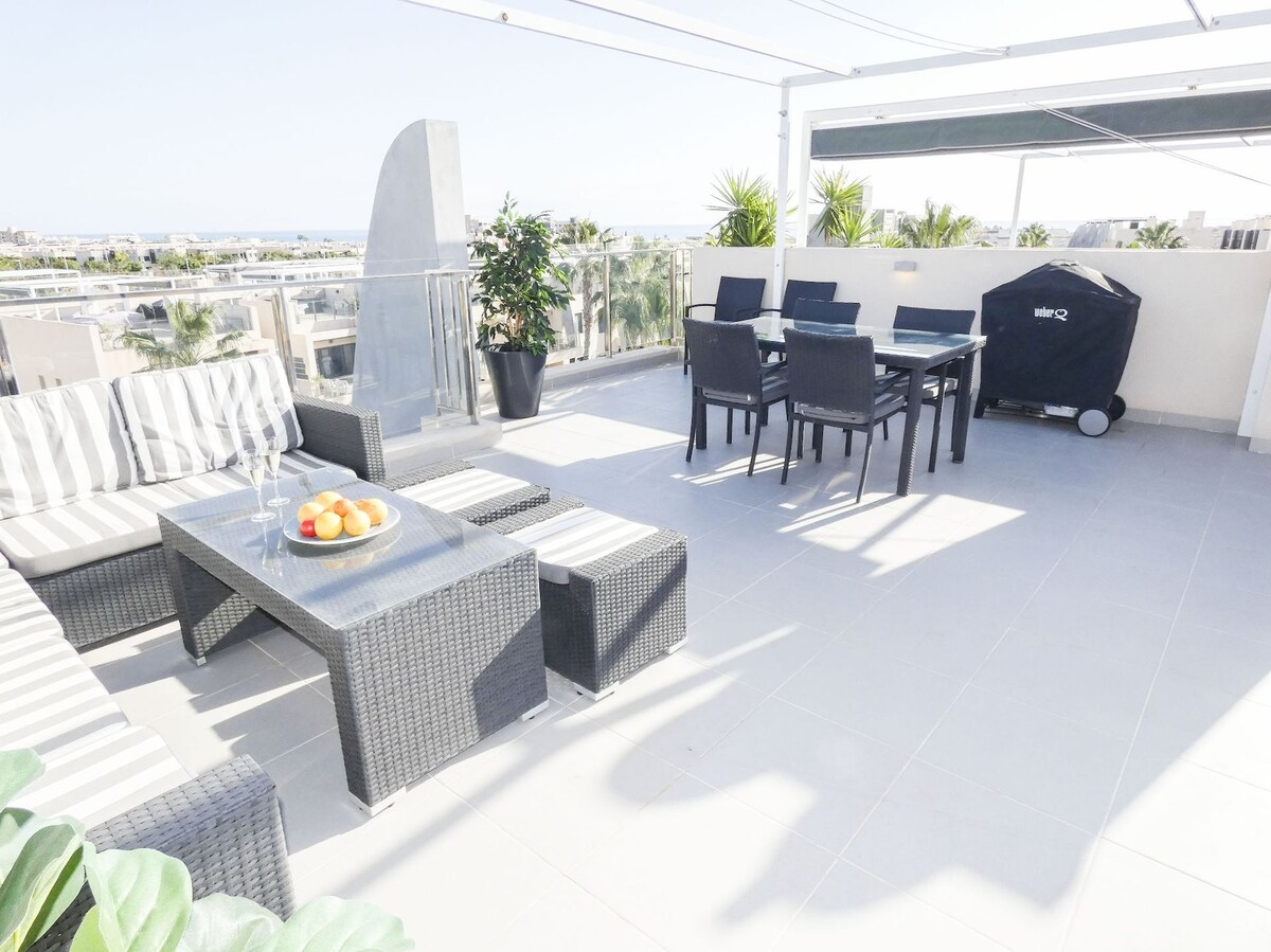 Experience coastal luxury in this stunning penthouse, just an 8-minute stroll from the iconic Mil Palmeras beach. Located in elegant Elisa Bay (Pilar de la Horadada), this 2017-built apartment offers 2 bedrooms, 2 bathrooms, a fully equipped kitchen, dishwasher, washing machine, TV and free WiFi. Enjoy Zara Home touches, air-conditioning throughout, two spacious terraces, five outdoor pools, a shopping area, restaurants and a secure gated community. Easy access from Murcia and Alicante airports.