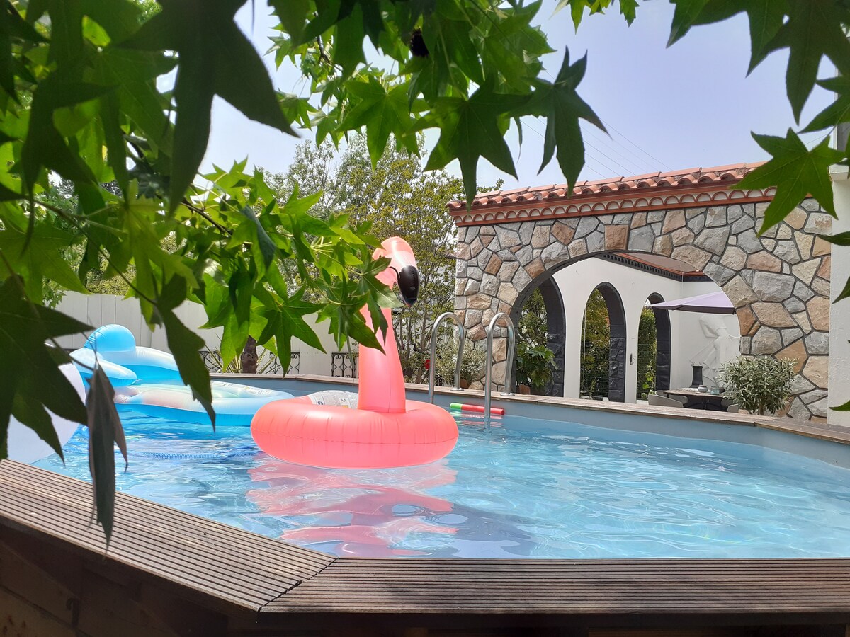 Villa con todas las comodidades en el centro de la ciudad con piscina cubierta climatizada de 5x2 m, bicicleta acuática y accesorios de aquagym. Numerosos equipamientos, incluyendo chimenea, aire acondicionado, TV de pantalla grande, terraza de madera, 2 salones exteriores, mesa de ping pong... Cerca del transporte (estación de tren, autobús y metro) y de las tiendas, a solo 10 minutos de la plaza del Capitolio. Ideal para relajarse y visitar la ciudad y los alrededores de Toulouse.