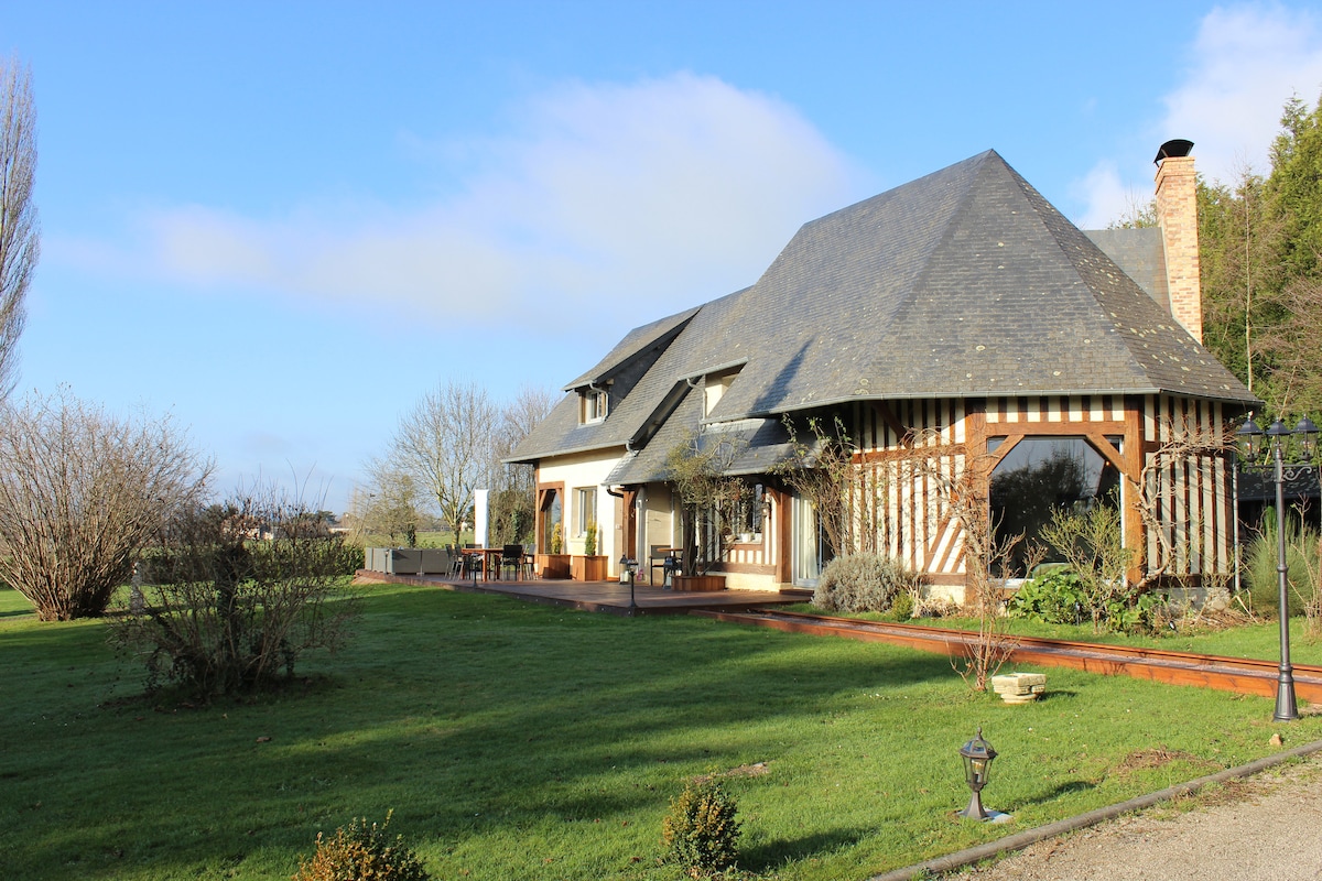 Casa de familia normanda con entramados de madera, espaciosa, acogedora, cálida, en un nido de vegetación, y bordeada por un pequeño arroyo en el centro del país de Auge. Gran parcela de 8000m2 cerrada y arbolada, rodeada de pastos, perfecta para los niños. Muebles y camas de calidad. Totalmente equipada con electrodomésticos, Wifi y ramo de TV. La casa ha sido clasificada como "alojamiento turístico" de 5 estrellas. Se proporcionan sábanas y toallas, solo con sus pertenencias personales.