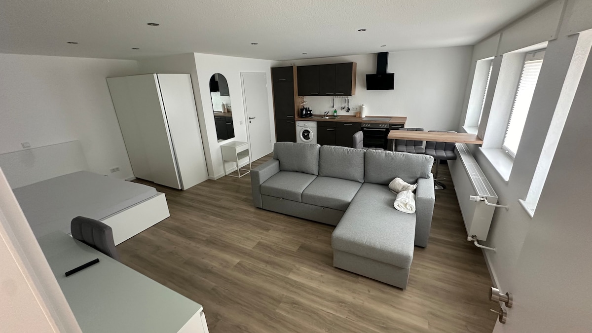 The apartment has an ideal location in Friedberg’s inner city. 5 minute walk to reach central station: Frankfurt-Central Station by regional train (20 min) and suburban train S6 (35 min) and Gießen-Central Station (30 min). Frankfurt-Fair by suburban train S6 (25 min). 20 minutes drive by car to the motorway access A5. There are several restaurants, coffee houses, bars, supermarkets, backeries, doctors, post offices, banks (ATM). The main shopping street in walking distance (3-5 minutes).