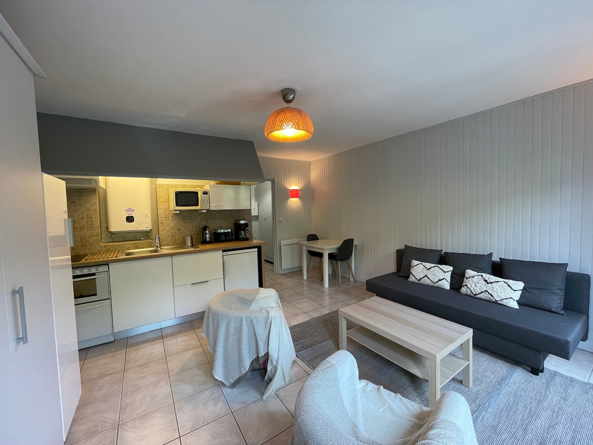 Centro de la ciudad, T1bis de 28m2, en el primer piso con ascensor frente a las termas y a 2 pasos de los callejones de Etigny y los telecabinas. ¡Podrás ir a todas partes a pie! Totalmente equipado con electrodomésticos, vajilla. Baño separado, armarios, dormitorio con cama de 140. TV de pantalla plana Muy tranquilo, el apartamento y el balcón dan a un callejón sin salida, sin tráfico. Estacionamiento en la calle gratuito. Posibilidad de aparcar una moto en el patio del edificio.