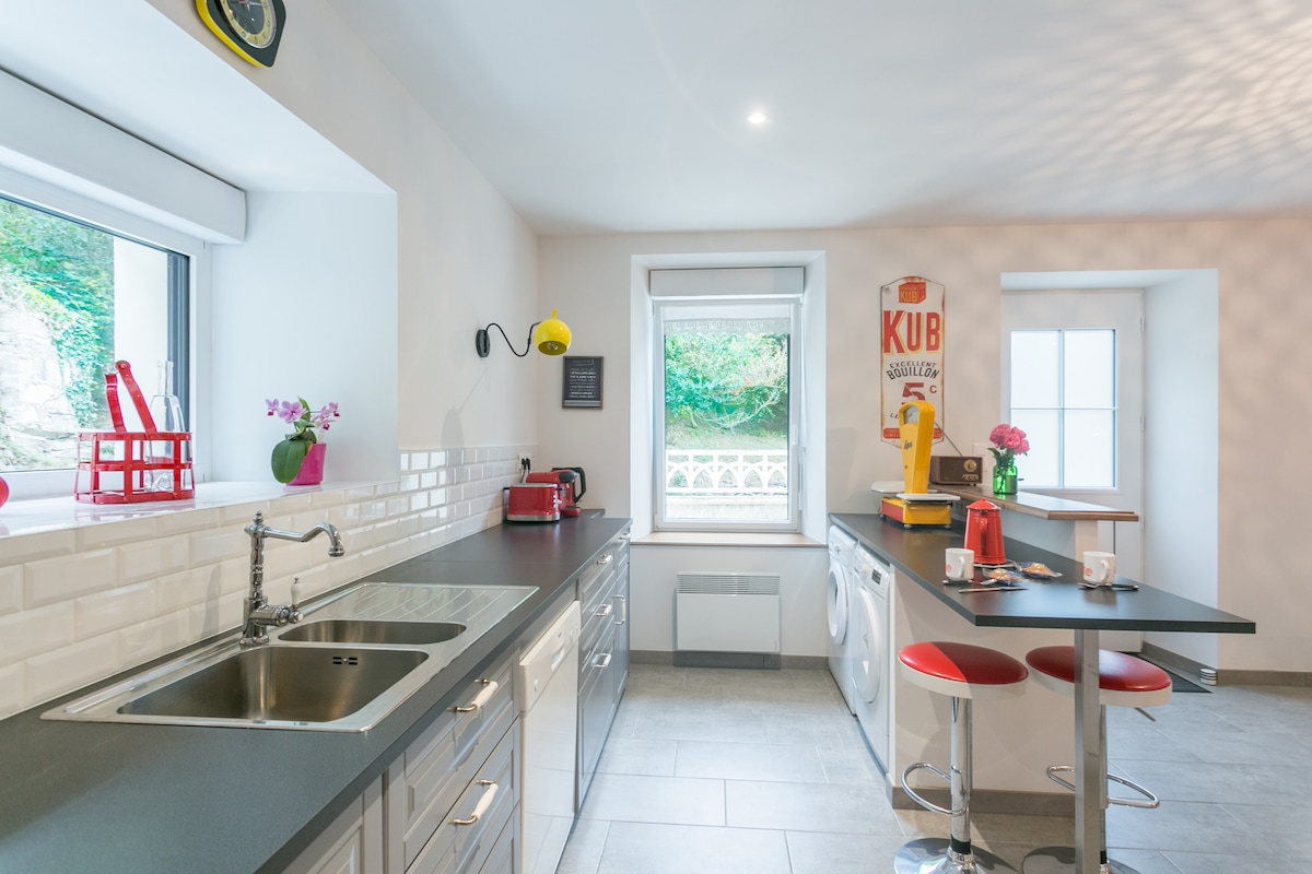 Simplifica tu vida en este tranquilo y céntrico alojamiento. Cerca de todos los comercios (panadería, carnicería, supermercados a menos de 10 minutos andando). Está idealmente ubicado en el centro de Tréguier, donde podrá disfrutar de las ventajas de la ciudad sin sus inconvenientes. Está ubicado en nuestro terreno vallado y completamente privado. Plaza de aparcamiento privado y terraza. NB: No podemos aceptar animales en la casa rural porque nuestro gato no lo acepta...
