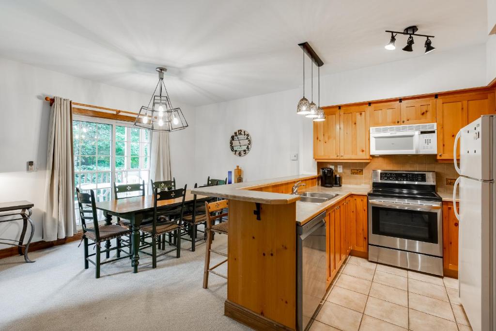 Tremblant Escape. Apartamento de 2 dormitorios ubicado a pocos pasos del pueblo principal. Tendrás acceso a 2 piscinas (en verano) y a 2 jacuzzis (toda la temporada). A poca distancia a pie (15 minutos) o servicio de traslado gratuito a la base del pueblo. Ubicado cerca de tiendas y restaurantes, pero enclavado en la naturaleza. Fácil acceso a actividades como senderismo, ciclismo, rutas de senderismo y esquí. Totalmente equipado con lavadora/secadora, wifi, chimenea de leña y cocina completa. Ideal para familias y estrictamente para no fumadores. No se admiten mascotas.