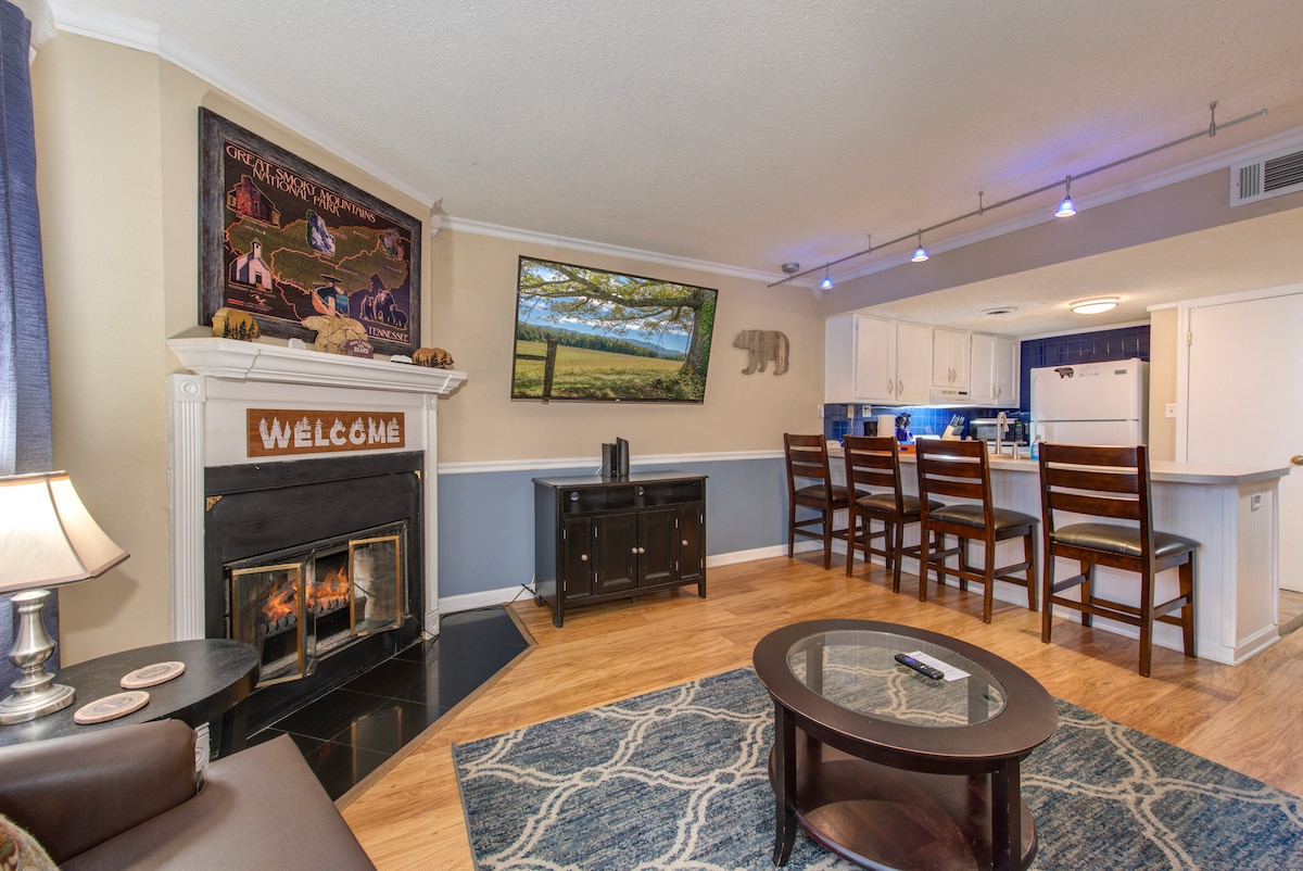 ¡1 acre de felicidad privada y tranquila! Televisor nuevo de 65 pulgadas, ropa de cama, utensilios de cocina, lavadora/secadora, cafetera, café, té. ¡Muchas toallas, toneladas de almohadas, mantas, champú, acondicionador, jabón, jacuzzi, bañera de hidromasaje, porche cubierto, terraza, chimenea y mucho más! ¡No tendrás que irte! ¡Se entregan comestibles! Cerca de bodega, cafetería, restaurantes, puedes ir caminando, ¡pero te sentirás como si estuvieras solo! ¡Cades Cove, montañas a pocos minutos! ¡Rutas de ciclismo, senderismo, rafting y kayak! Descuentos, sí.