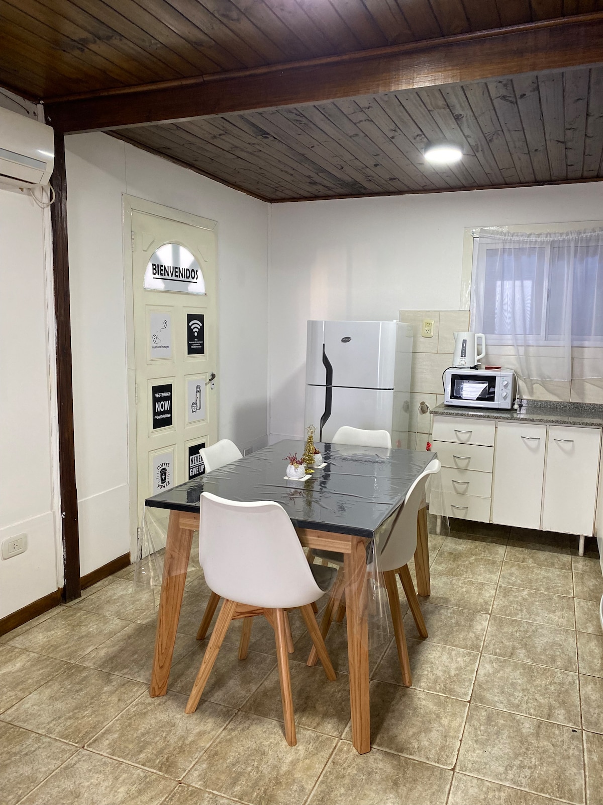Relájate con toda la familia en este alojamiento cocina equipada, baño completo, Wifi, tv 50, aire acondicionado,somier de 2 p,camas cucheta de 1p. Ropa blanca.Entrada para vehículo,patio,parrilla y pileta. Galeria techada sillas y mesa de jardín.