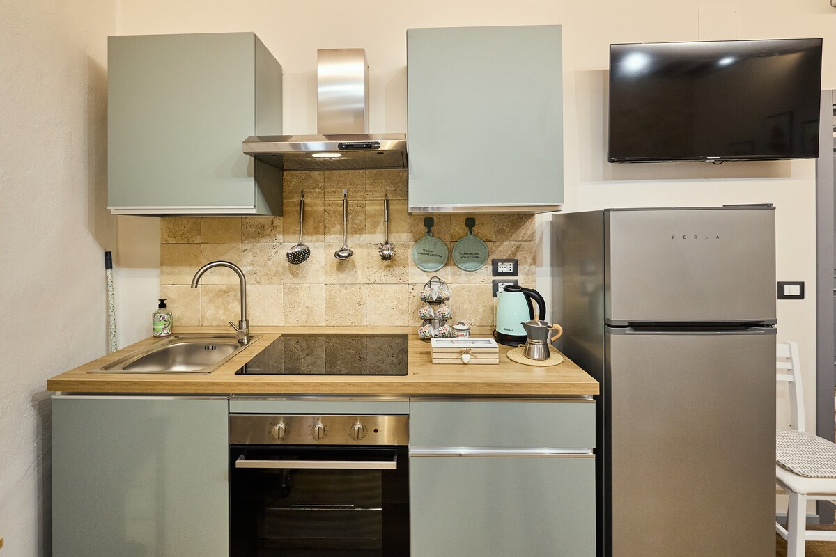 La vista al árbol de nogal es nuestro nuevo apartamento en la parte más tranquila de Montepulciano. La casa con aire acondicionado está a 250 metros de la plaza y la calle principal, y tiene 1 habitación doble (tamaño king), 1 baño con ducha grande y una gran cocina-sala de estar con una bonita terraza con vistas a las colinas. A partir del verano de 2026, habrá una degustación de vinos disponible en el nuevo jardín para todos los huéspedes de nuestros 4 apartamentos y carne a la parrilla. A partir de las 7:00 p. m. (reserva con mucha anticipación) Los huéspedes aparcarán cerca del apartamento