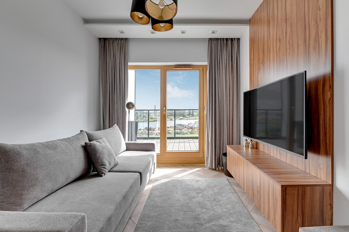 Precioso apartamento 62m, dormitorio, sala de estar con cocina, lavadero, baño con ducha. Totalmente equipado. En el edificio, hay una piscina para los residentes, jacuzzi, sauna. Justo en el centro de Gdansk, con vistas al río. Muchos restaurantes, tiendas, tranvías, estación de tren. Recomiendo a las personas que les gusta estar en medio del evento y les gusta explorar Gdansk sin conducir.