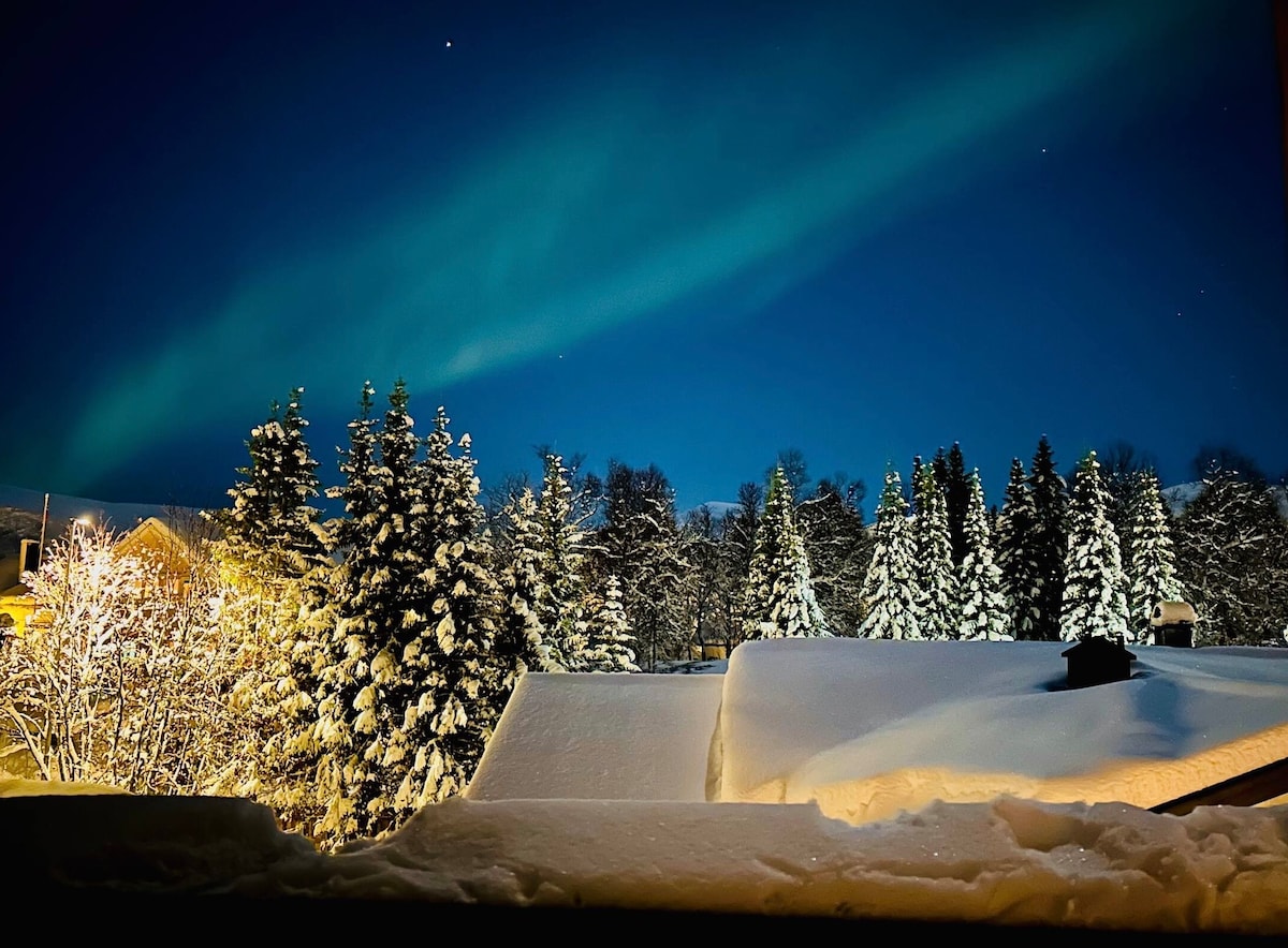 Disfruta de las vistas y de las auroras boreales desde el balcón o relájate en la bañera de hidromasaje. Uso gratuito de lavadora, secadora, bañera de hidromasaje, toallas, ropa de cama, detergentes, cocina y TV por cable/internet 2 dormitorios con camas dobles para un total de 4 personas. Cómodo colchón inflable de aire alto auto inflable (90x200x40 cm) para un quinto huésped, se puede poner en el dormitorio o en la sala de estar. Estacionamiento gratuito para un auto. Entrada en la parte trasera de la casa con escaleras hasta el apartamento.