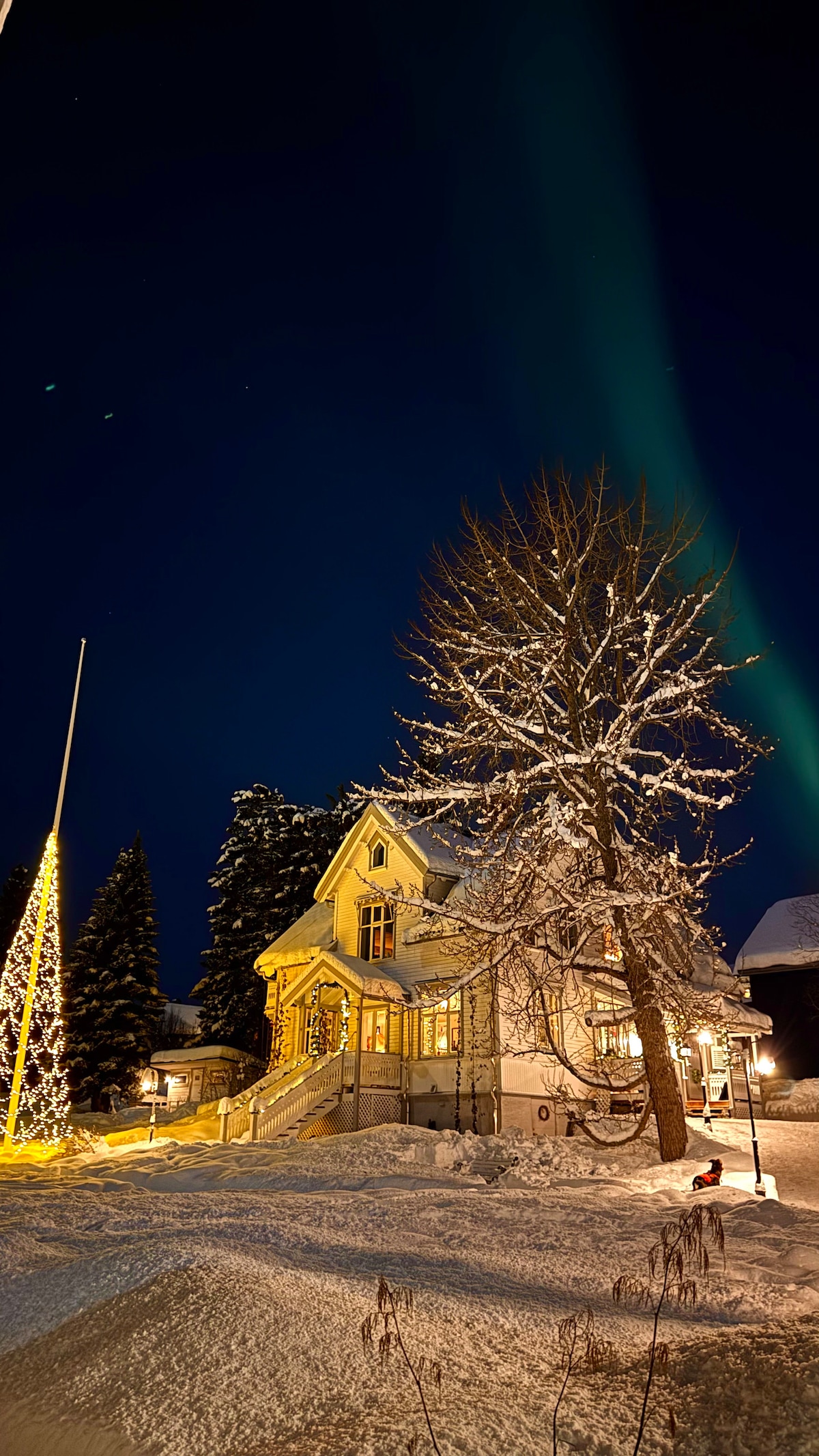 Esta pequeña casa de huéspedes tiene la vista más hermosa directamente desde la cocina y la ventana del dormitorio. Dado que no hay farolas alrededor, es el lugar perfecto para observar la Aurora y disfrutar de una escapada privada relajante en el Ártico. Vivimos al lado con nuestro hijo de 6 años y nuestro gato. Estamos en el trabajo desde las 8:00 están en casa desde aproximadamente las 4:30p. m. y los fines de semana. Servicios en las instalaciones: Carga de vehículos eléctricos 400 kr/Traslado privado 500 kr/Bañera de hidromasaje 1200 kr o 100 € por 2 días/Sauna 500 kr o 40 EUR por uso (solo efectivo)