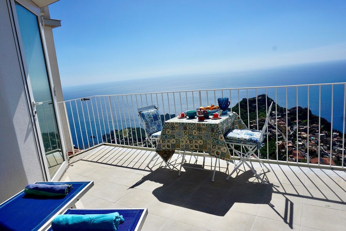 Ampio openspace di circa 75 metri quadrati. Dotato di WI-FI, aria condizionata, cucina induzione, TV sat, letto queen size,ampi e comodi divani. Ha una meravigliosa veranda al piano, dotata di lettini prendisole e di tavolo e sedie per un relax completo, con una vista mozzafiato che abbraccia la baia di Giardini fino all’Etna e Taormina. Una cartolina di incommensurabile bellezza. Tassa di soggiorno del Comune di Taormina di € 3 a persona al giorno (solo per i primi 10 giorni)