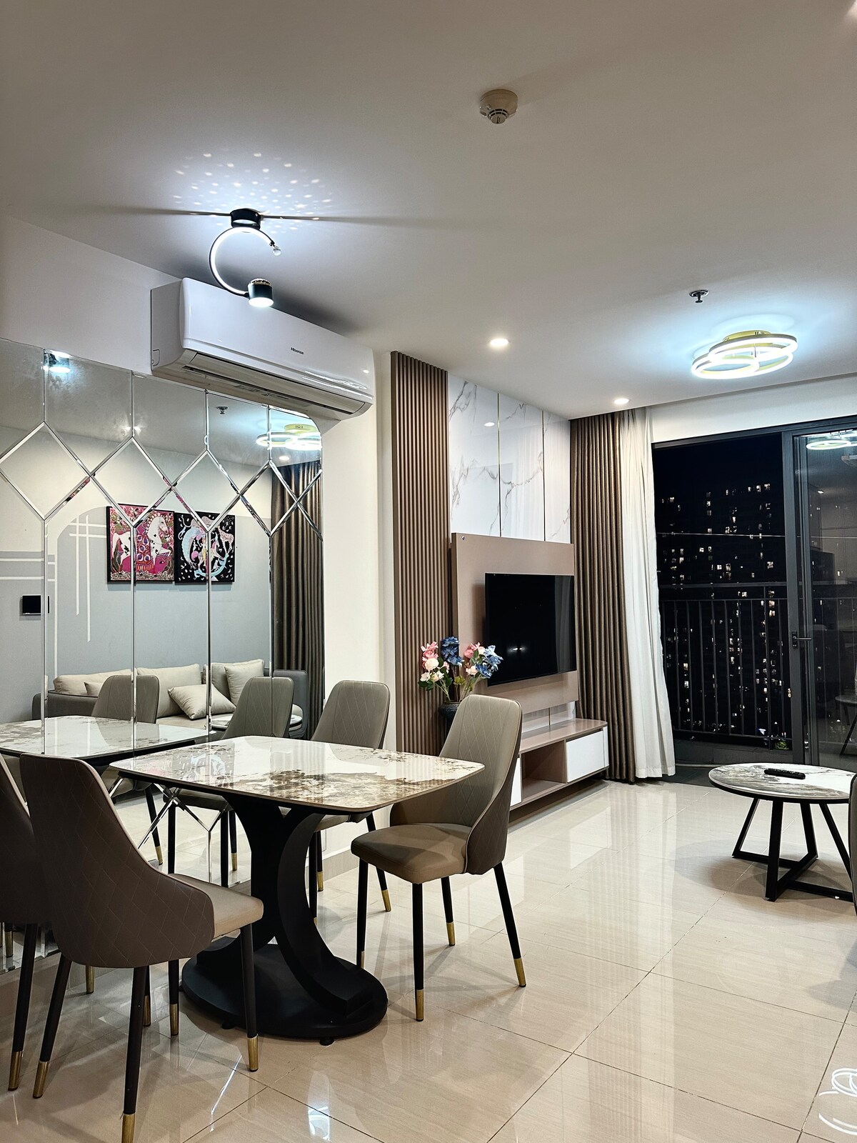 Un sistema de proyector de relajación moderno y amueblado totalmente amueblado de 2 dormitorios será el lugar ideal para que te relajes con familiares o amigos. Las instalaciones circundantes incluyen playa artificial, zona de barbacoa frente a la costa, orilla del río, piscina cubierta al aire libre, lago de pesca, kayak, pedal de pato, enorme complejo de centros comerciales,... y puedes moverte fácilmente al parque Ocean 2 o 3 con solo 10p en autobús eléctrico de Vin.