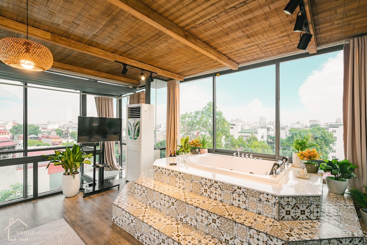 Esta es una casa ubicada justo en el corazón del casco antiguo de Hanoi, diseñada en un estilo bohemio con luz natural. Tendrás un espacio lleno de vegetación y un amplio balcón con vistas a nuestro jardín tropical. Tu comodidad es nuestra máxima prioridad. Puedes hacer uso de toda la casa, incluida la habitación, la cocina, la sala de estar, la pequeña zona de jardín y el espacio de lavandería. Queremos que te sientas como si estuvieras en tu propio hogar.