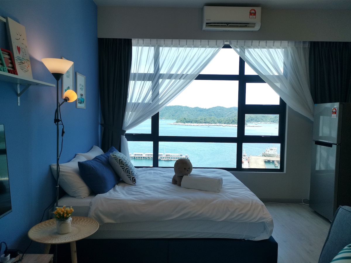 Nuevo apartamento ubicado en el distrito financiero y junto a la bahía marítima. Disfruta de vistas al mar rodeadas de islas en nuestra unidad de piso alto. A poca distancia a pie de Jetty, con comodidad para ir de isla en isla; el centro de convenciones internacional, el centro comercial Jesselton (Duty Free) y el centro comercial Suria Sabah están cerca. Nuestra suite es limpia, con desinfección frecuente y purificador de aire. Ideal para familias y también adecuado para parejas y viajes de negocios.