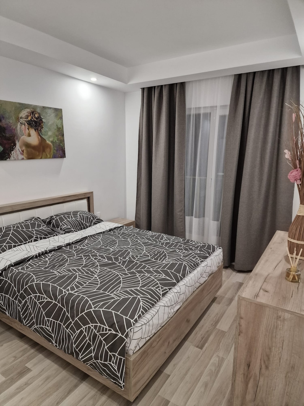 Apartamento 🏡 nuevo, moderno y totalmente amueblado, ideal para 6 personas. Amplio, con un diseño elegante y todas las instalaciones incluidas: 📍 Cerca de Therme y del aeropuerto de Otopeni 🅿️ Aparcamiento subterráneo gratuito. 🔑 Auto registro de entrada. 📶 WiFi rápido ❄️ Aire acondicionado 🧺 Lavadora 🍳 Cocina equipada 🛏️ Dormitorio con cama tamaño queen 🛋️ Sala de estar con sofá cama