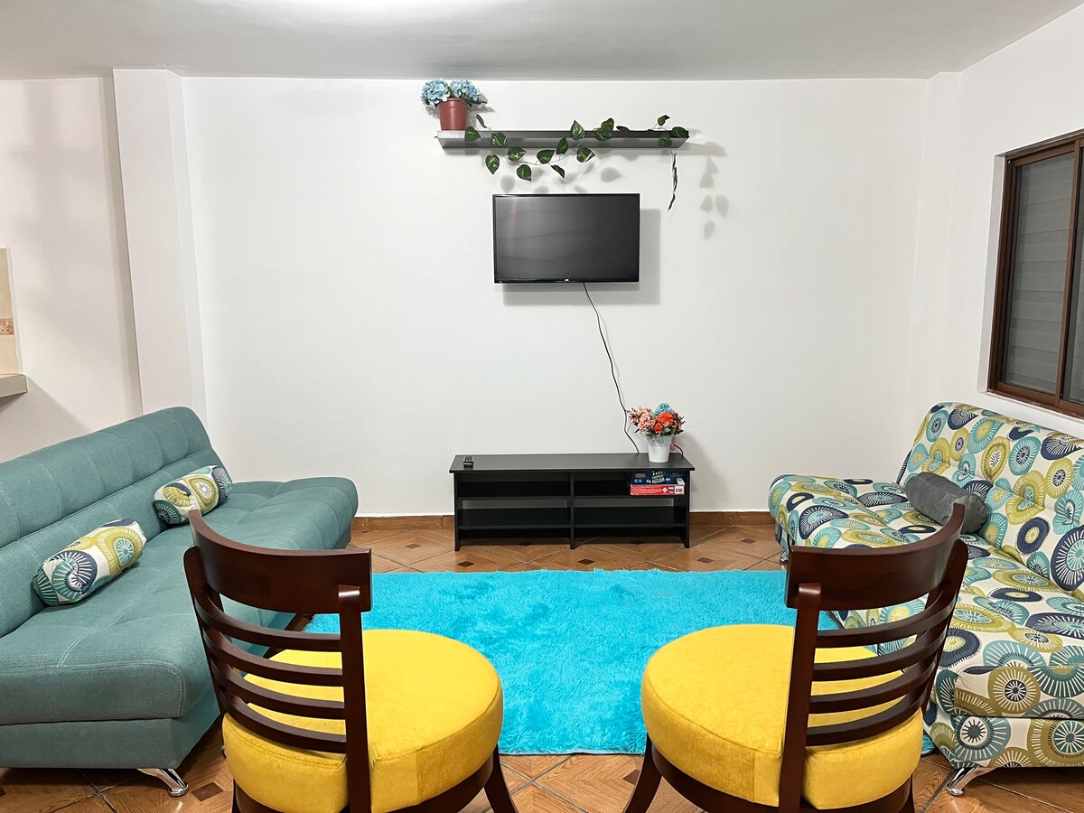 ¡Bienvenidos a nuestro moderno departamento en el centro de la ciudad! Con dos dormitorios, es perfecto para familias, sala, cocina totalmente equipada, Magis TV, Wi-Fi rápido. Acceso controlado y vigilancia. A pocos min de atracciones turísticas y restaurantes, es la elección ideal alojarte cómodo y seguro. 📌 Nota: El estacionamiento está sujeto a disponibilidad. Si está ocupado, te daremos acceso a un parqueadero privado externo, seguro y a pocos pasos del alojamiento, sin costo adicional.