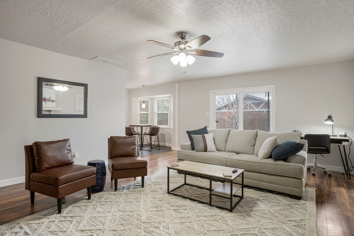 ¡Perfecto para los familiares que visitan a la familia! Diseñado para ofrecer una comodidad de primer nivel, en un vecindario seguro y tranquilo, para que puedas relajarte con estilo. Recientemente remodelado a 350 pies cuadrados, el loft se adapta perfectamente a viajeros individuales, parejas y mascotas que pueden jugar en el patio trasero compartido totalmente vallado. ¡El trabajo remoto aquí es muy fácil! ¡Utiliza wifi de alta velocidad, un gran escritorio incorporado y una pequeña cocina equipada con café! ¡Además! ¡Mejora tu relajación a otro nivel reservando el servicio de jacuzzi a $ 20 por noche!