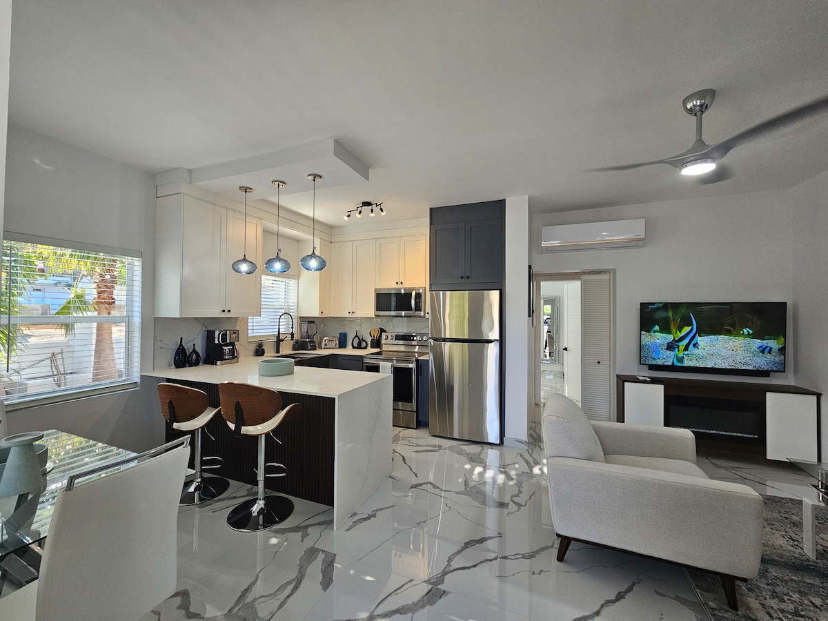 First Rock Villas es un moderno apartamento corporativo de 1 dormitorio y 1 baño, de alquiler a corto plazo, a solo 2 minutos a pie de la playa y de dos restaurantes frente a la playa. Cada unidad cuenta con una cocina totalmente equipada, lavadora/secadora privada en la unidad, entrada cerrada, estacionamiento gratuito y área de barbacoa compartida. Sillas de playa, hielera y toallas incluidas. Asequible e ideal para relajarse, trabajar o estancias prolongadas. Se recomienda un vehículo para explorar la isla.