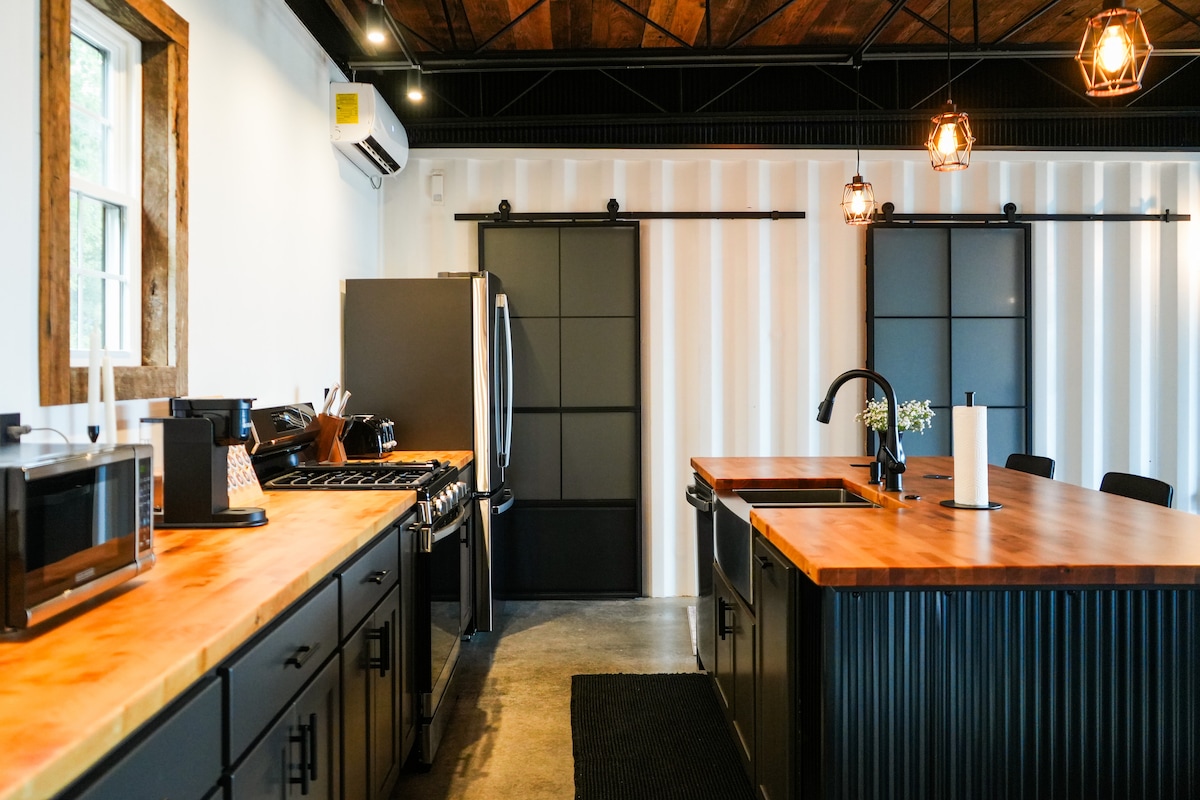 Creek Ridge Cabins en Lexington ofrece un refugio aislado único con la comodidad de tiendas y restaurantes cerca. Nuestras cabañas cuentan con un diseño moderno de lujo con hermosos interiores acogedores en un entorno arbolado encantado. Una pared de ventanas con vistas a la gran terraza ofrece impresionantes vistas al pintoresco barranco y al arroyo que hay debajo. Ya sea en un viaje de negocios o en una escapada de fin de semana, tu estancia en la cabaña The Stars será un refugio de bienvenida.