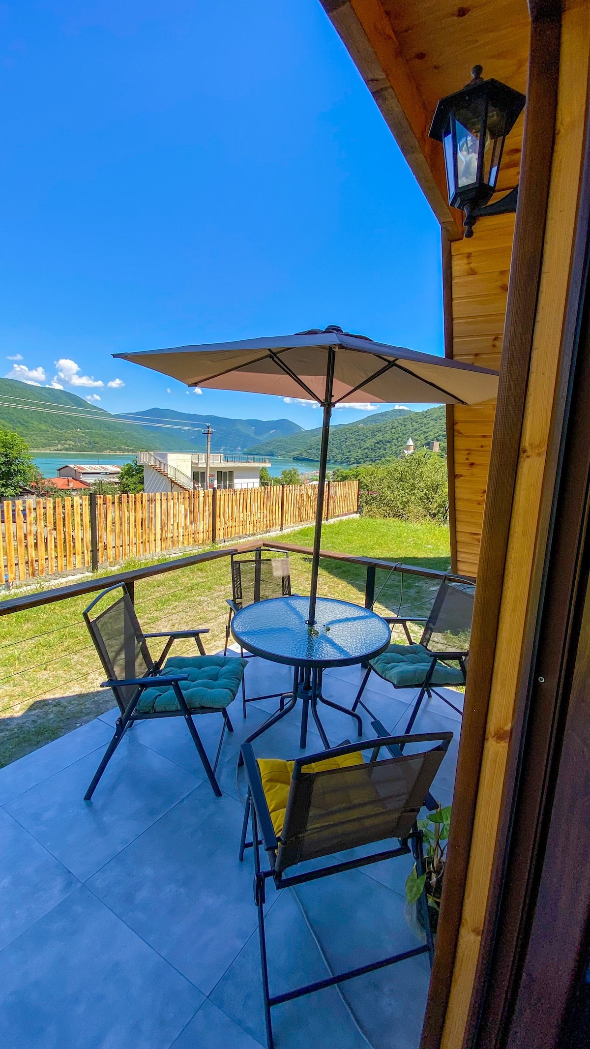 Nuestra casa de montaña con estacionamiento privado está a 45 minutos en coche de la capital, Tiflis, y tiene vistas impresionantes de las montañas circundantes y el lago Jinvali. En verano se pueden ver caballos pastando en el pie del lago. A solo 5 minutos del castillo de Ananuri, es un lugar único para explorar y relajarte en las montañas georgianas. Tu anfitriona será Katy, que habla ruso y georgiano.