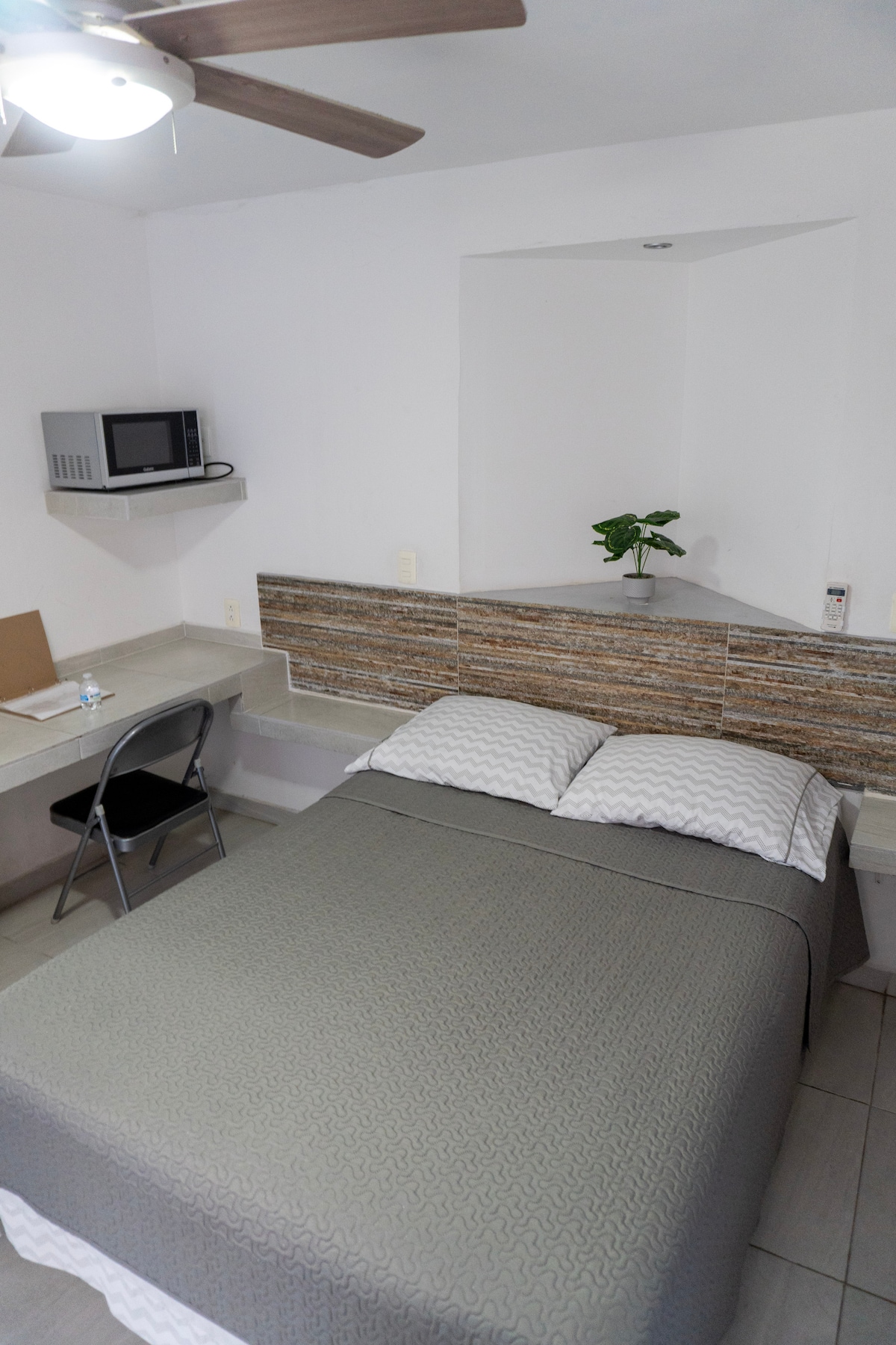 Habitación sencilla y funcional en la mejor zona de Tuxtla, perfecta para viajeros prácticos que buscan un lugar limpio, seguro y bien ubicado sin pagar de más. Cama matrimonial, baño propio, wifi y estacionamiento incluido. Entrada autónoma con lockbox para que llegues cuando necesites. Importante: Esta habitación cuenta con ventilador de techo (sin aire acondicionado). Ideal para quienes viajan en temporada fresca o no son sensibles al calor.