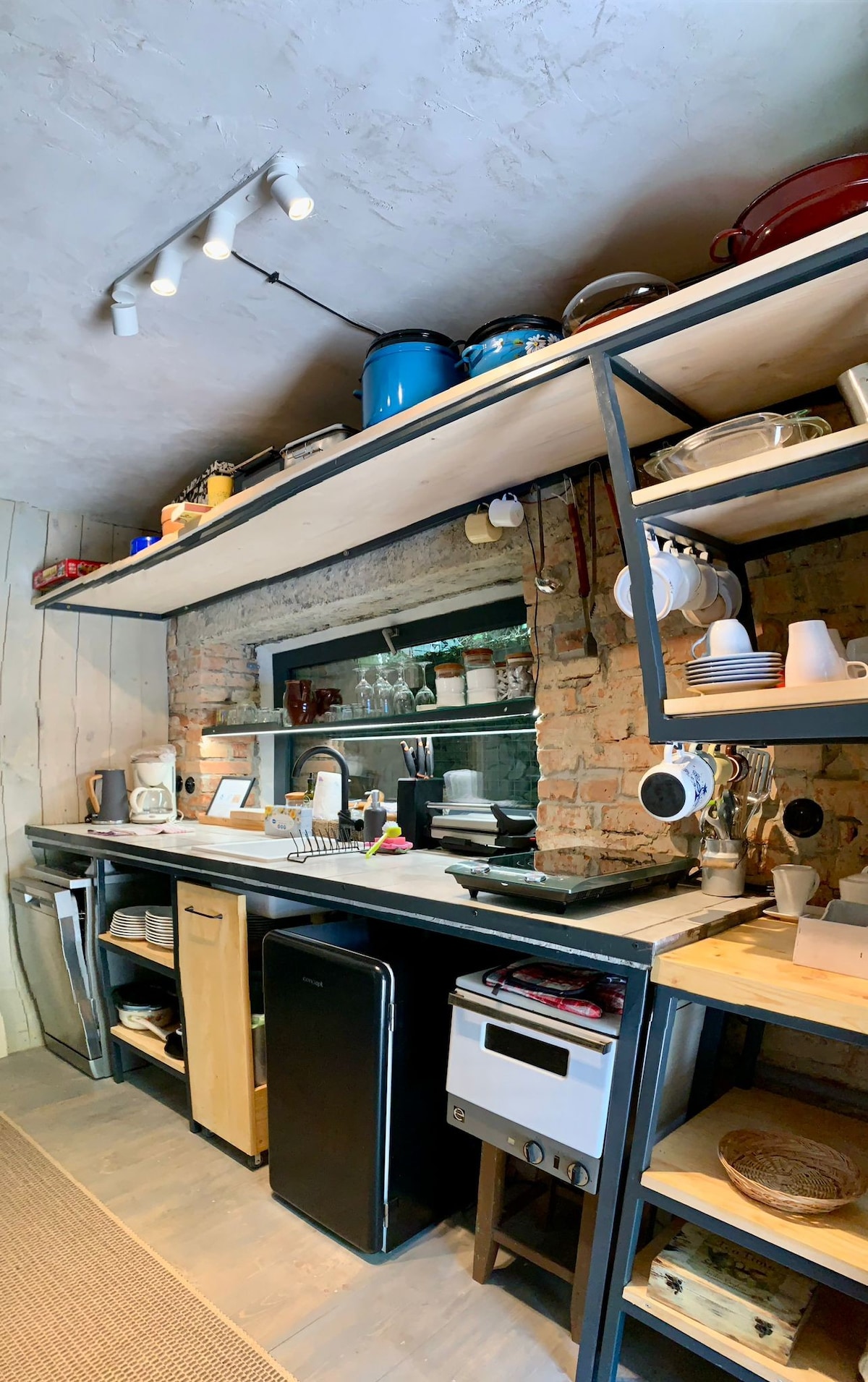 Construido con nuestras propias manos desde los cimientos hasta los muebles interiores hechos a mano. Alrededores de la casa arreglados para su comodidad: terraza con tumbonas y bañeras para bañarse en verano, bañera con agua caliente para los días de primavera y otoño, asientos al aire libre en una terraza parcialmente cubierta junto a un pequeño estanque, espacio para hacer barbacoas o asar. Y vegetación plantada por todas partes. Quería que los huéspedes experimentaran la calidad y la comodidad a primera vista y en su propia piel.