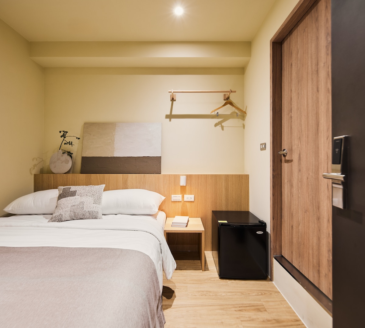 室內的灰白主色,配搭北美木紋銅色傢俱及家飾, 用心為您的居住空間提供沈靜優雅的感覺。日韓系電器的選用,不論是無線充電藍牙喇叭 ,大螢幕伸縮高清電視 ,都能滿足您對影音效果的要求。房源位於高樓內縮樓層,阻絕不必要的噪音並滿足您對景觀 ,安靜及隱私的要求。大樓並配有全天候警衛,住戶專屬電梯 ,公用大露台 ,以及地下收費停車場, 位處西門町核心路段,無論搭乘捷運或自駕都非常方便。El diseño interior basado en el tono de la tierra ofrece una atmósfera cálida, tranquila, curativa y encantadora. Instalaciones de la habitación, incluyendo cama doble, baño privado con ducha, aire acondicionado, televisor inteligente 4K con películas/Netflix, Internet WIFI, iluminación de la cala y reproductor de música con conexión inalámbrica y puertos de cargador USB.