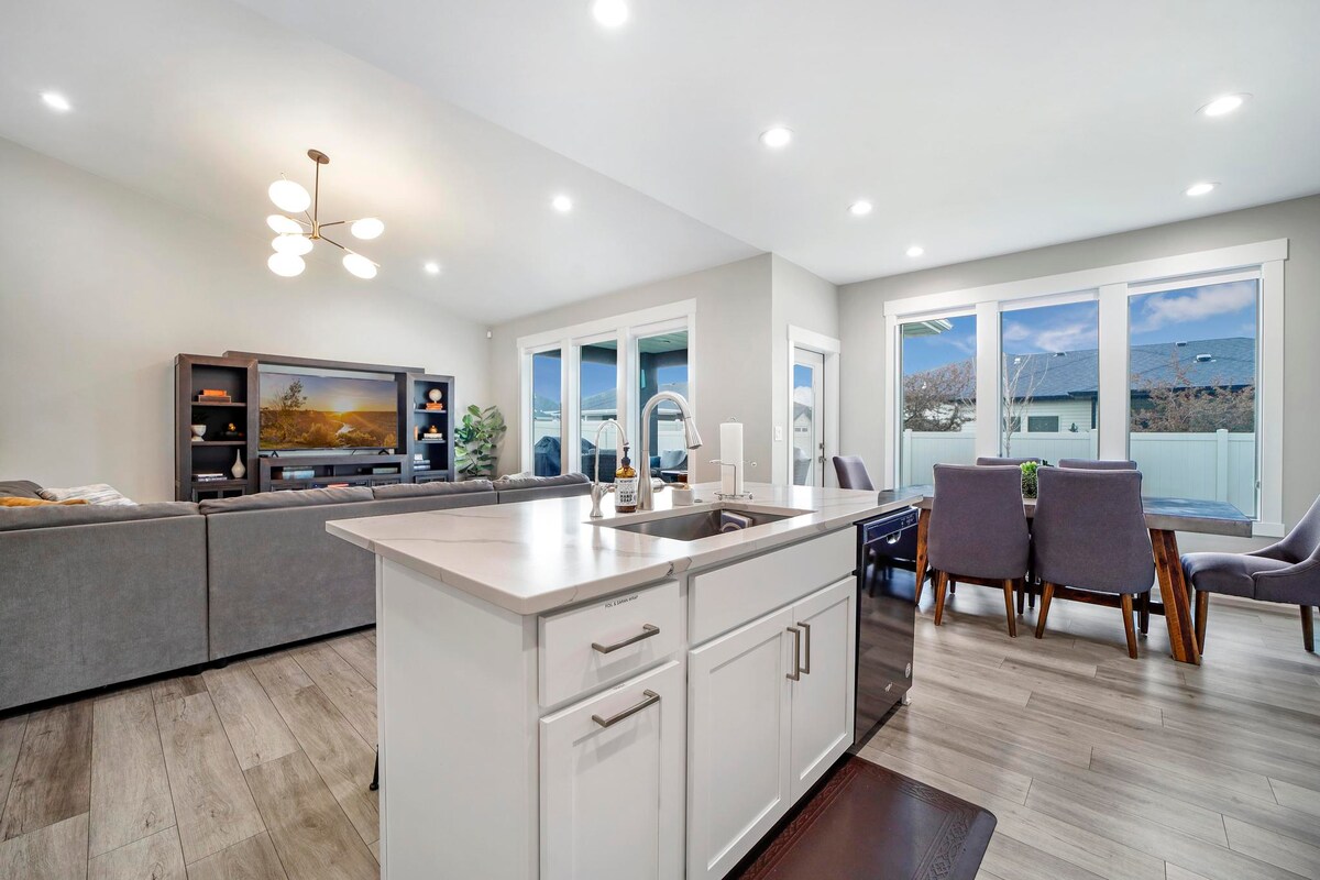 * Nueva construcción de 2019, totalmente amueblada. * Aproximadamente 1800 pies cuadrados de espacio habitable. * A poca distancia a pie del Hospital y de Grace Assisted Living * El garaje para 2 coches permite la entrada directa/privada a alojamiento * Televisores de alta definición montados en la pared en el dormitorio principal y en la sala de estar. * Gran vestidor en el dormitorio principal. * Doble tocador en el baño principal. * Patio cubierto. * Patio cerrado. * Lavadora y secadora * Explora las cercanas y pintorescas cataratas Shoshone. el parque Centennial Waterfront o camina por el sendero Rim Path