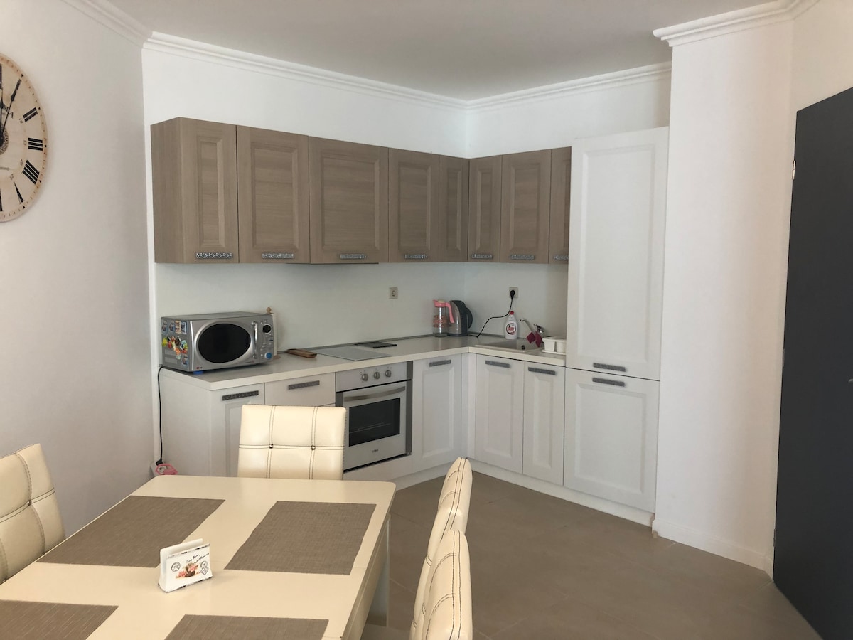 Apartamento en el centro de la ciudad de Tsarevo, cerca de restaurantes, tiendas y playas. Lejos del ruido y la vida nocturna. Disposición: salón con cocina separada y mesa de comedor, dos dormitorios, baño y terraza. Equipado con TV, nevera, aire acondicionado e internet gratuito. Ofrece a sus huéspedes comodidad para relajarse y descansar tranquilamente. Adecuado para unas vacaciones familiares para 2+2 o cuatro adultos. Bienvenido y disfrute de unas vacaciones de verano agradables y verdaderamente completas.
