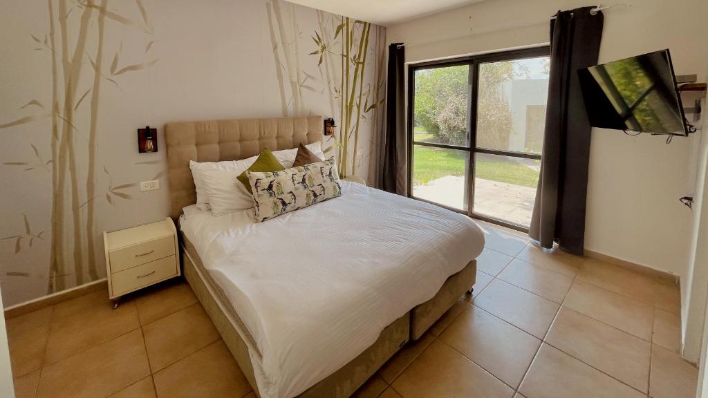 ¡Una villa familiar mágica! Un lugar perfecto para pasar el tiempo en familia y en pareja. La villa es muy espaciosa, 3 dormitorios y una sala de estar, un comedor especialmente grande y equipado. 6 camas + 2 sofás + colchones. El patio tiene un gran césped y zonas de estar iluminadas con luz diurna y nocturna. Una piscina espaciosa y modesta para los turistas. Esperanza para los hombres. Una gran mesa de ping pong te estará esperando en el patio para el juego. ¡Te estamos esperando! Muy importante: no es posible tener una barbacoa en Shabat. Tampoco es posible escuchar música en el patio en Shabat.