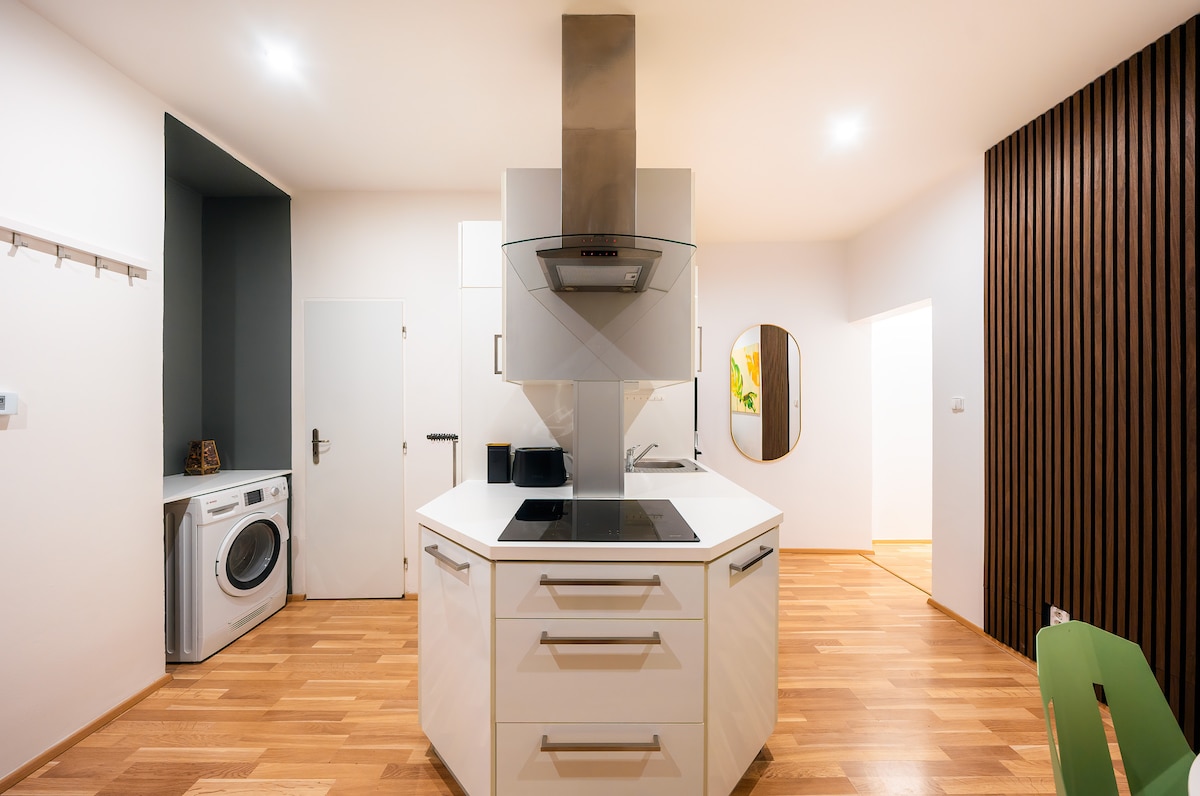 ¡Te presentamos un acogedor y moderno apartamento en el corazón de Praga! Ubicado cerca de todos los principales lugares de interés de la ciudad, nuestro apartamento recién renovado ofrece el equilibrio perfecto entre comodidad y conveniencia. Ya sea que estés buscando explorar el hermoso casco antiguo, visitar el famoso Puente de Carlos o disfrutar de una noche en uno de los muchos barrios vibrantes de Praga, nuestro apartamento es el alojamiento perfecto para tu estancia.
