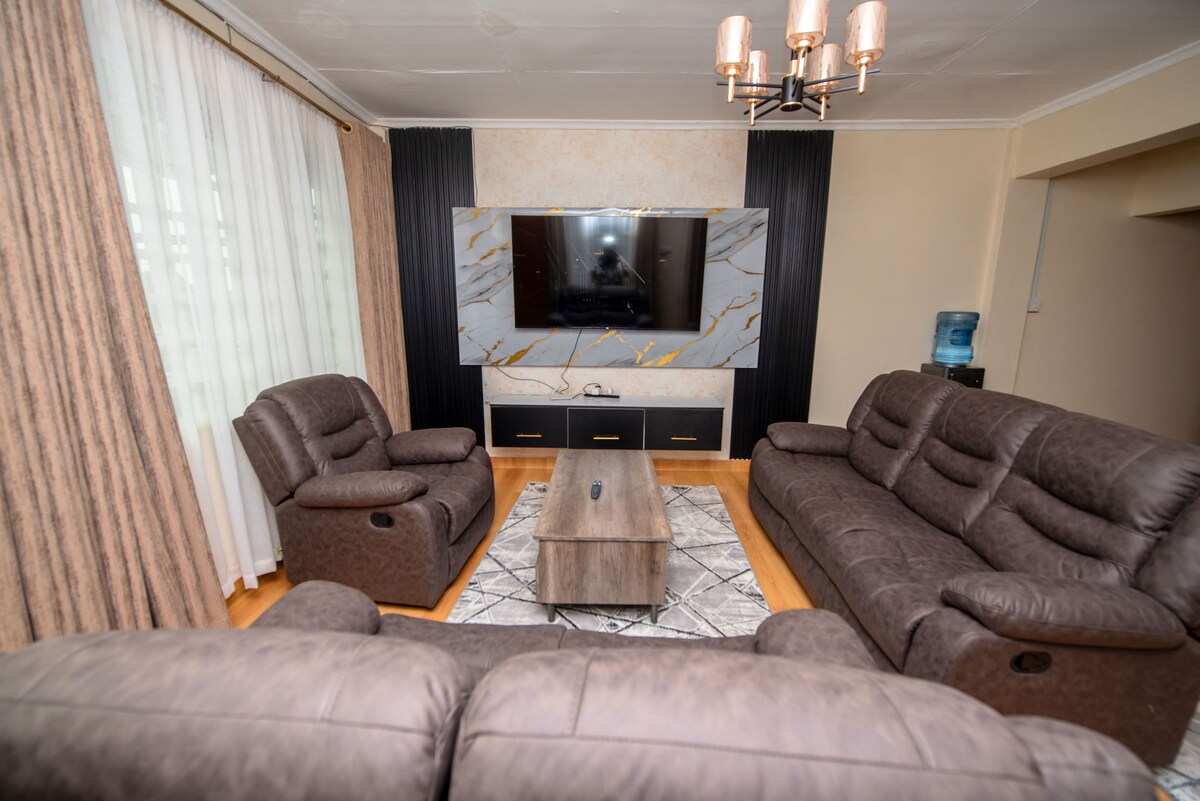 Escápate a mi lugar tranquilo y acogedor, perfectamente situado para tus aventuras en Eldoret. Disfruta de la comodidad de una ubicación céntrica, con el centro comercial Rupa a solo 5 minutos en coche. En el interior, encontrarás un espacio bellamente amueblado y cuidadosamente equipado para garantizar una estancia cómoda y agradable.