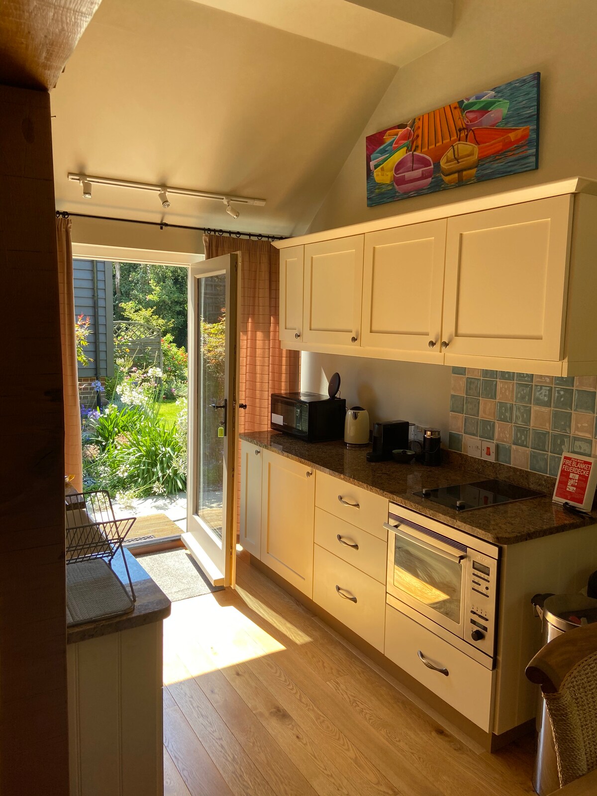 Queenies Cottage has been sensitively restored to retain many original architectural features whilst providing modern comforts; underfloor heating, a woodburner, fitted kitchen , downstairs wet room and an ensuite shower room to the master bedroom. Set well back from the road, the south-facing, private garden has an additional covered dining space, great in àll seasons. Excellent fast broadband. 2 dogs welcome Queenies is a delightful, light space for 2 guests with a secure garden.