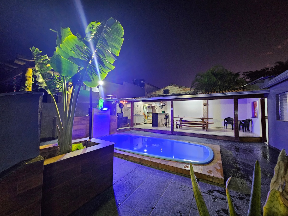 Casa completa para que descanses, tenemos una piscina, 5 dormitorios, uno de ellos suite con aire acondicionado y los otros equipados con ventiladores, 7 cajas individuales, 1 caja doble, 1 bicama, 2 habitaciones con ventiladores, sofá cama y ropa de cama, ropa de cama/baño completa, 3 baños, cocina totalmente equipada con utensilios, área de ocio con barbacoa, patrón, garaje para 3 coches, silla de alimentación y bañera. Le damos la bienvenida a tu mascota. Nota: No se permiten fiestas. Emitimos facturas a empresas.
