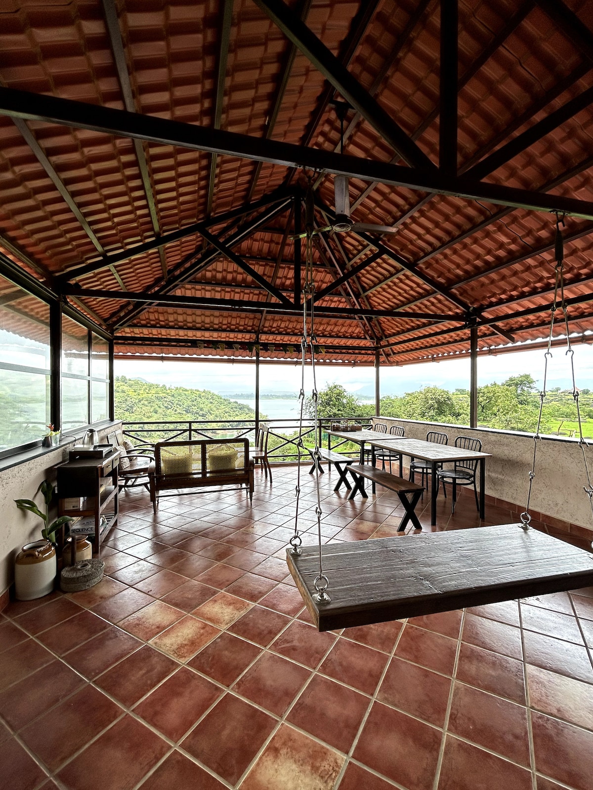 Welcome to our lavish private pool villa featuring elegant interiors with premium Italian-finish tiles ✨, designed for guests who appreciate comfort and style. Surrounded by scenic hills 🌿 and fresh mountain air, this villa offers the perfect blend of luxury and relaxation. Just 5 minutes from the city centre 🚗 and under 10 minutes from Lonavala Station 🚉, you enjoy both prime convenience and peaceful surroundings — making it perfect for families 👨👧👧, friends 🥂 & celebrations 🎉.