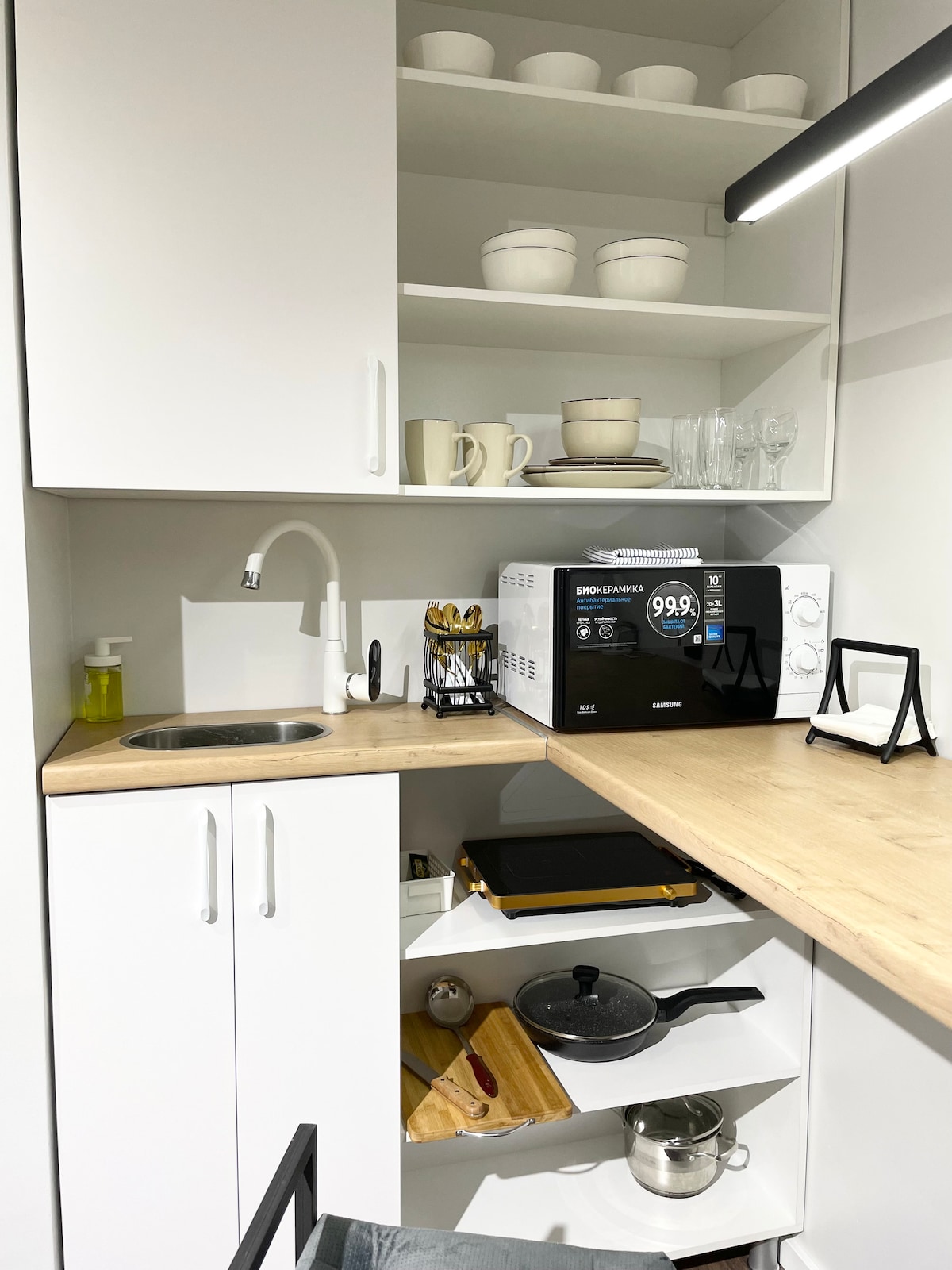 El estudio se alquila después de una renovación importante para 1 o 2 personas. A tu servicio: *Albornoces *Pantuflas *Cepillos de dientes * Televisión INTELIGENTE *WiFi *Cómoda cama con colchón ortopédico Askona *Ducha con efecto lluvia *Hermosa vista desde el noveno piso * Cerradura electrónica (check-in sin contacto) *Plancha *Secadora de pelo *Lavadora *vitrocerámica *Horno Los apartamentos están ubicados en el centro de la ciudad. Los centros comerciales, el cine, las cafeterías y los restaurantes están a poca distancia a pie. Práctico intercambio de transporte.
