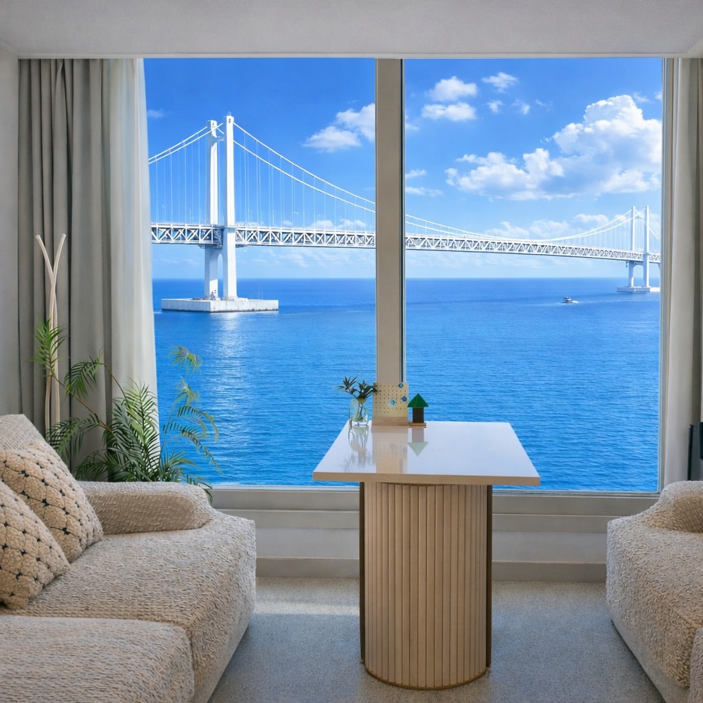 🏖 Gwangan MOODRIAN Vista completa al mar del puente Gwangan, que completa un estilo de vida premium Gwangalli Moodrian, ubicado en la playa de Gwangalli, Busan Un espacio digno adecuado para todos los viajes familiares, de pareja y de amigos, El panorama dinámico del puente Gwangan que se despliega ante tus ojos Este es un alojamiento totalmente equipado que se puede ver desde la parte frontal del dormitorio y la sala de estar. 🏝 Vista al mar · Vista a la ciudad · Vista al puente Gwangan en una pantalla Un nuevo apartamento excepcional en Gwangalli y un diseño espacioso con una estructura de dos habitaciones de 20 metros cuadrados Comodidad como en casa, con servicios de primera calidad y una gestión cuidadosa 🏡 Interior moderno y estable con comodidades de lujo, Desde estancias cortas hasta largas, ofrecemos la mejor comodidad. Siempre lo mantenemos limpio y ordenado con la cuidadosa gestión del anfitrión. La comodidad es como un hotel, El corazón está más cerca. 😊 Pequeños momentos en Mudrian Espero que tengas un buen recuerdo 💛
