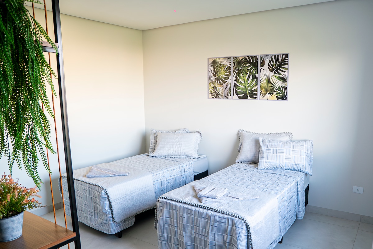 Um apartamento confortável,e seguro. ✔️ar condicionado nos dois quartos temos 2 opções 2 camas de casal / ou 1 cama de casal e 2 de solteiro . ✔️ Sala aconchegante, sofá macio e com opção sendo retrátil e reclinável,com tv/ ✔️cozinha equipada ✔lavadora de roupas Uma área gormett ,no piso superior com uma sacada espaçosa para famílias com crianças 👦👧e pais de pet🐾 espaço de playground e uma quadra de esporte estacionamento 🅿️ 02 (dois veiculos )🚙🚙 carregador de veículos