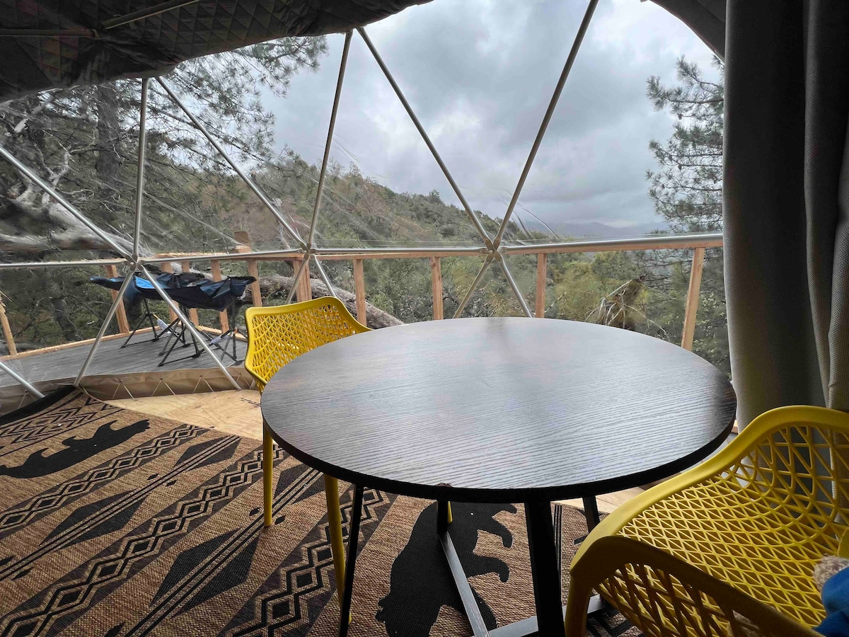 ¡Glamp con estilo a solo 15 minutos de Kings Canyon y Sequoia! Nuestras acogedoras cúpulas geodésicas se encuentran en 40 acres e incluyen aire acondicionado, WiFi, un televisor inteligente y una enorme ventana con una hermosa vista. Disfruta de una terraza privada al aire libre, acceso a un moderno baño privado (a 100 pies de distancia) y una cocina comunitaria al aire libre con parrilla. La cúpula ofrece unas vistas panorámicas del valle y las montañas de los alrededores. Tranquilo, único y perfecto para parejas o aventureros solitarios. Durante el invierno, mantente cómodo y caliente con una estufa de pellets.