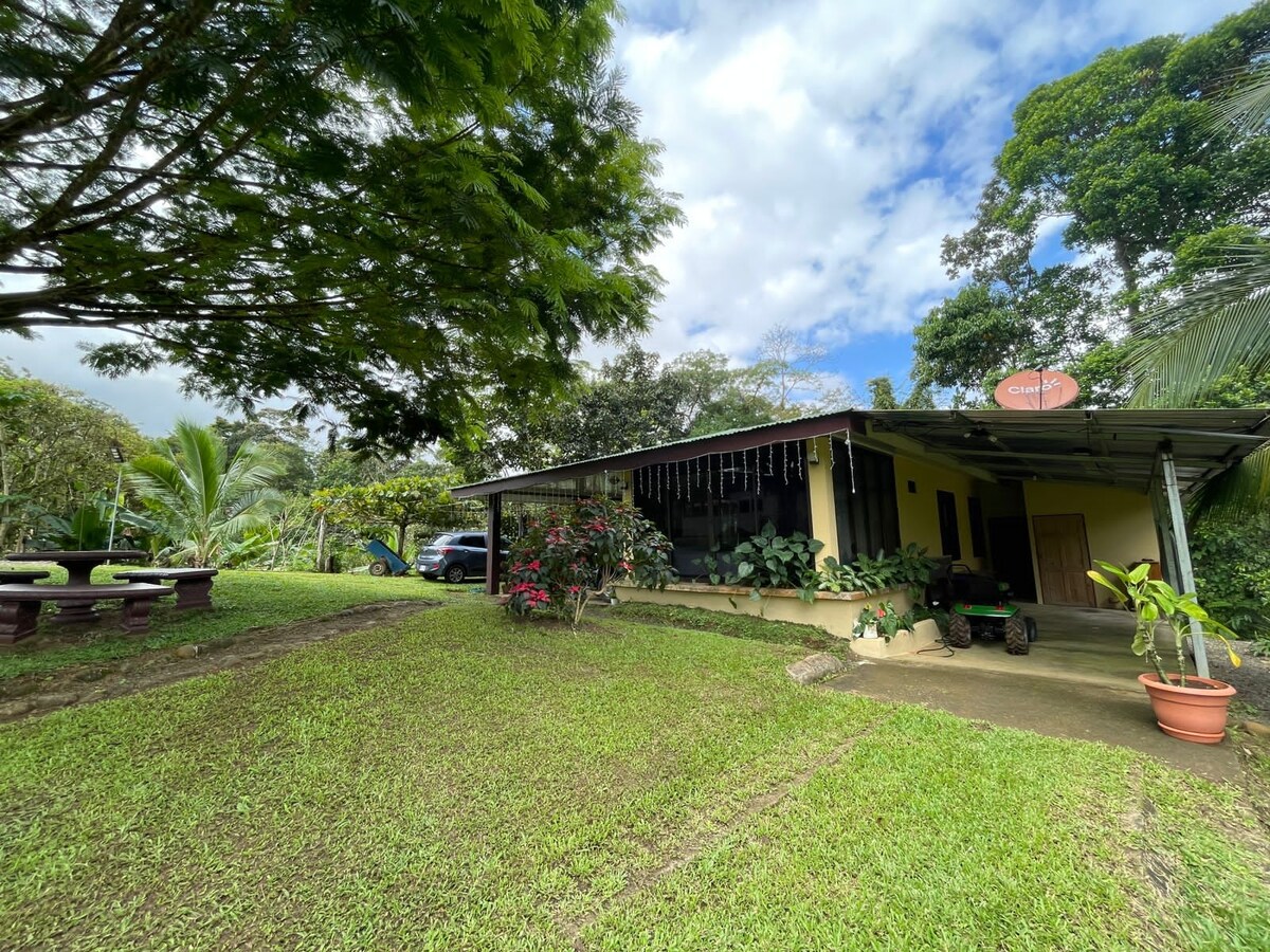 Aquí disfrutarás de la tranquilidad de la naturaleza, desde senderos entre cafetales y cacao hasta vistas inolvidables de la selva y la montaña. Nuestra casa principal –junto a las cabañas “Tucán” y “Oso Perezoso”– está diseñada para estadías cómodas, acogedoras y en contacto con el entorno. Ideal para familias, amigos o para quienes buscan desconectar. Te esperamos para que vivas la pura vida en un lugar auténtico.