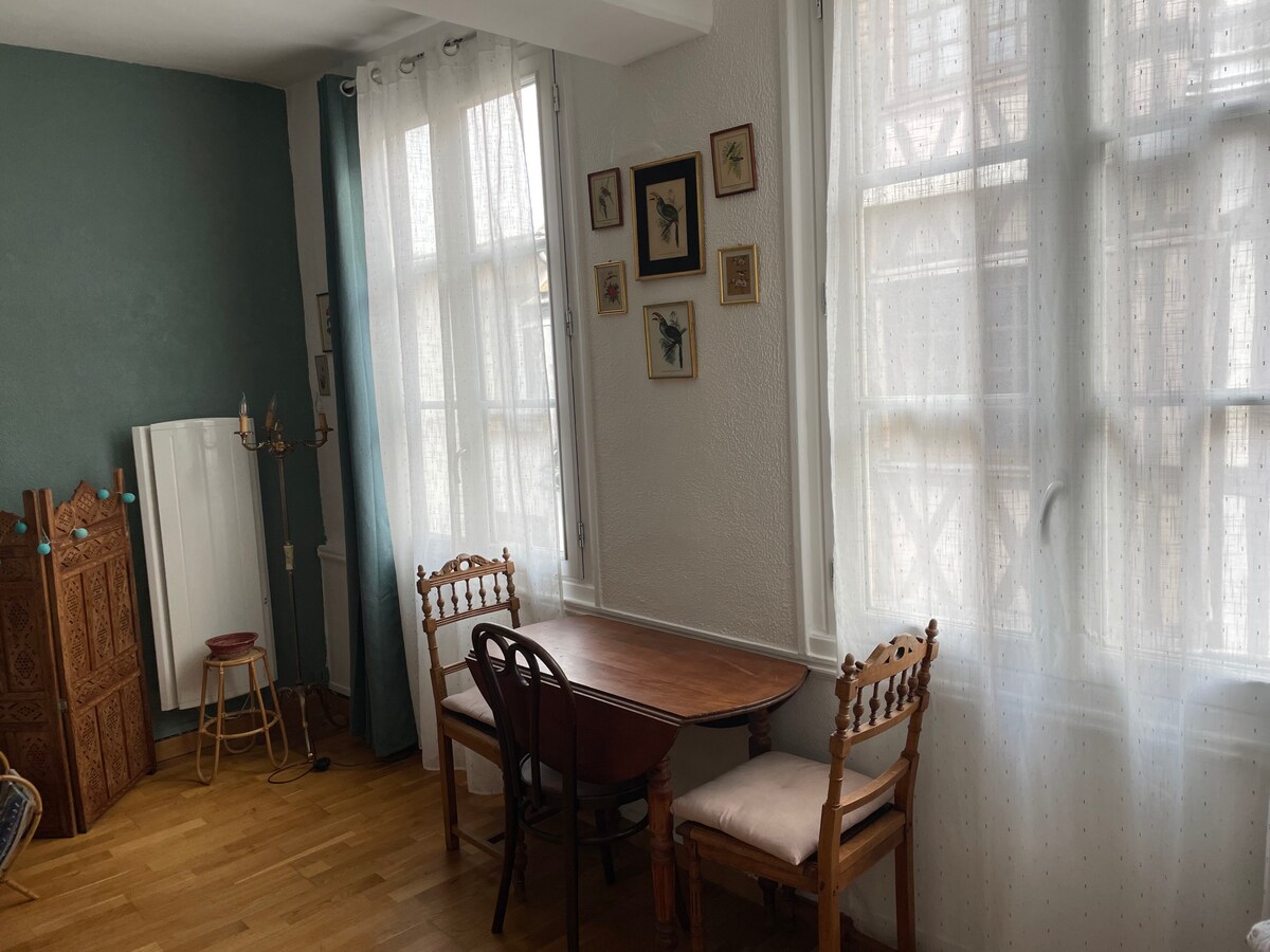 Gran estudio de 31 m² situado en el centro de Rouen, en el barrio del Palacio de Justicia en el tercer piso sin ascensor de un edificio antiguo con entramado de madera. Este alojamiento está clasificado con dos estrellas en la categoría de alojamientos amueblados para turistas Tiene capacidad para dos personas y es muy céntrico, en una calle peatonal. Alojamiento eco-responsable con prácticas ecológicas: productos de limpieza ecológicos, contenedor de reciclaje, bolsas de la compra...
