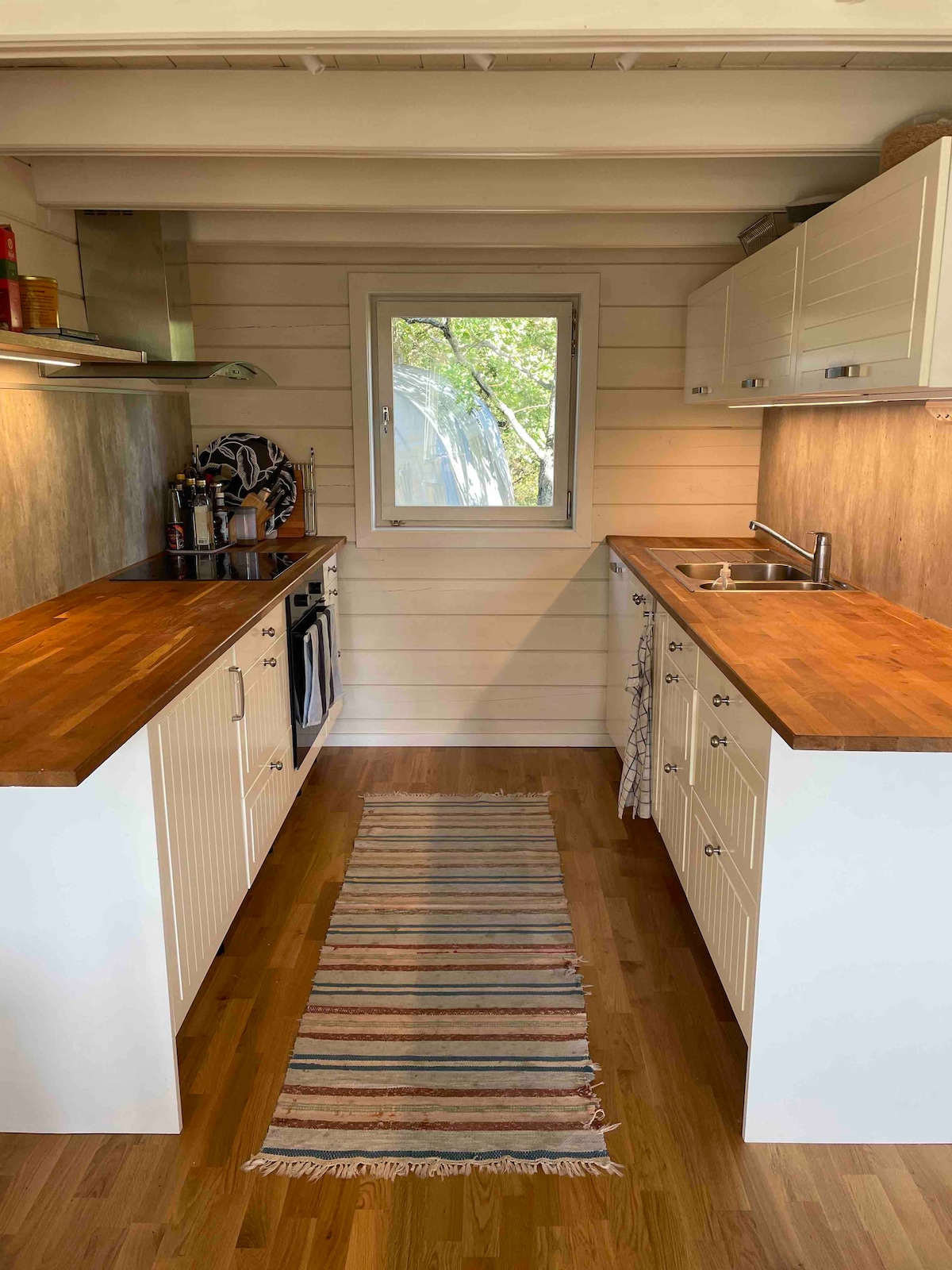 Cabaña con maravillosas vistas en contacto directo con la hermosa naturaleza. Interior fresco y amplias terrazas con parrilla. Sofá cama de 140 cm y una cama de 90 cm. Nevera, congelador, placa eléctrica y microondas. Moderno inodoro y ducha en un edificio separado reservado para el huésped. A 150 metros de la costa con muelles y a 3 km del castillo de Wik con una gran zona de baño para niños. Bonitos senderos y posibilidad de pesca, bote de remos, canoa. En la parcela hay otra casa para 2-5 personas en alquiler.