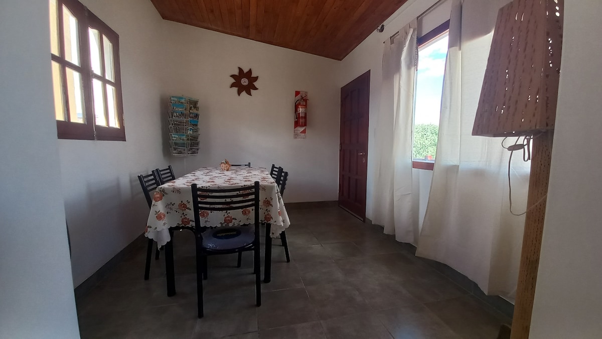 Te ofrecemos la comodidad de una amplia y luminosa casa ubicada en la tranquilidad de un barrio local del pueblo. Con todos los servicios necesarios y más. Detalles en cada rincón, para que además de descansar te sientas cómodo y acogido en cada lugar de la casa ! También un amplio patio, con asador y parrilla a disposición, y un quincho para disfrutar al aire libre.